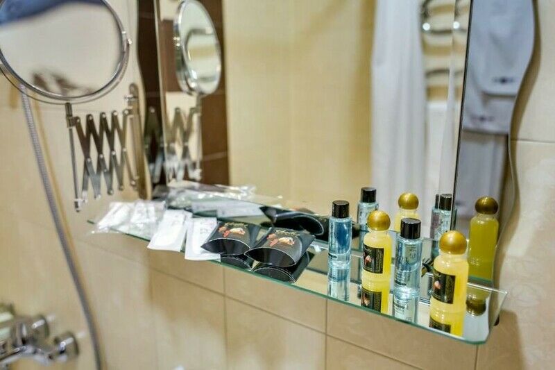 Минусы: тяжело настроить теплую воду в душе, зачастую она очень горячая. В первый день это не раздражало, перекрывалось другими плюсами. На второй день стало напрягать. В умывальнике вода нормальная. Это первое. Во вторых, придя после матча, попросила чай, сказали, что бар сегодня ночью, к сожалению, не работает. Но чисто по человечески, могли бы предложить кипяток, но нет...