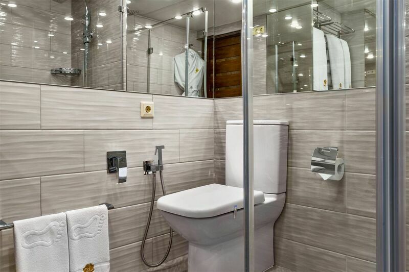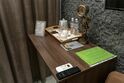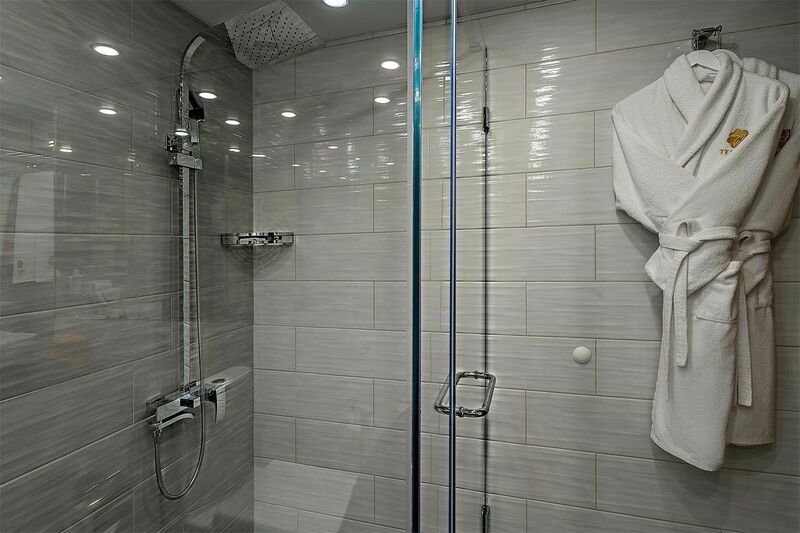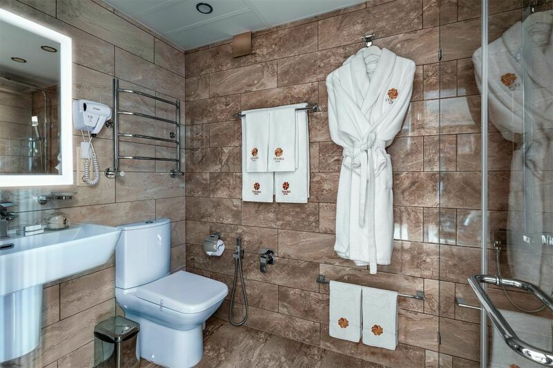 В номере халаты, тапочки, гладильная доска с утюгом, мини-бар, зубные щётки, шампуни.