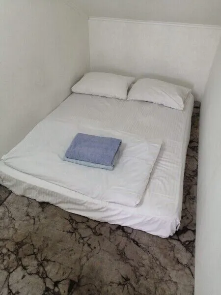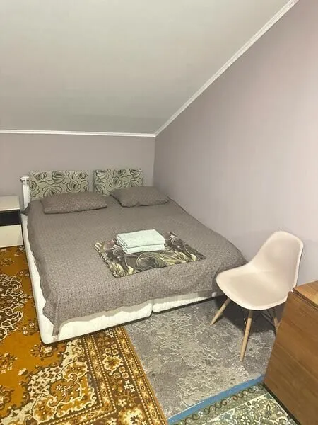Двуспальный матрас, постельное белье, кресло, номер для некурящих. На этаже есть холодильник, чайник, индукционная плита, мультиварка и необходимая посуда.