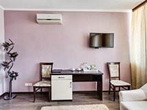 Этот просторный и светлый номер в классическом стиле прекрасно подходит для комфортного проживания. В номере одна двуспальная кровать и диван. При желании в нем с комфортом могут остановится 3-е человек. В номере есть собственная ванная комната, где гости найдут фен, бесплатные туалетные принадлежности и удобные домашние тапочки. Номер оборудован кондиционером, так что температура всегда будет комфортной для вас. В номере имеется ЖК-телевизор.Услуги и удобства