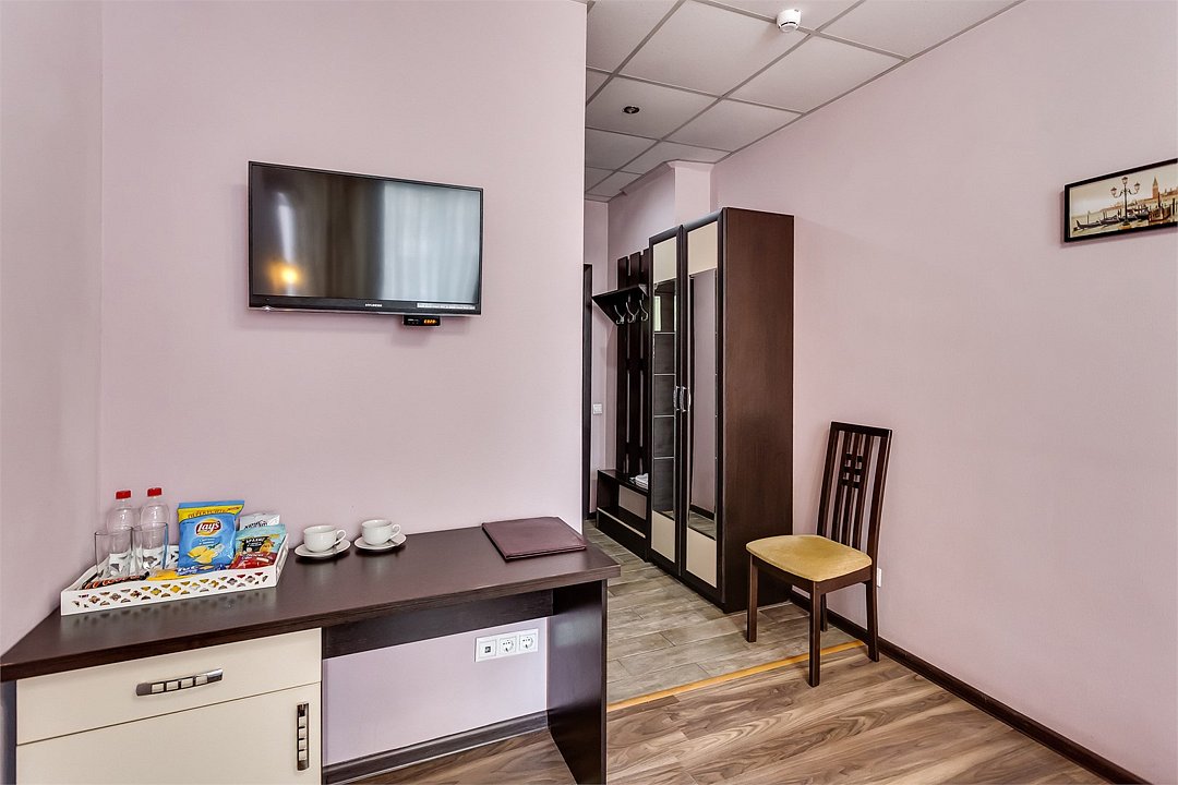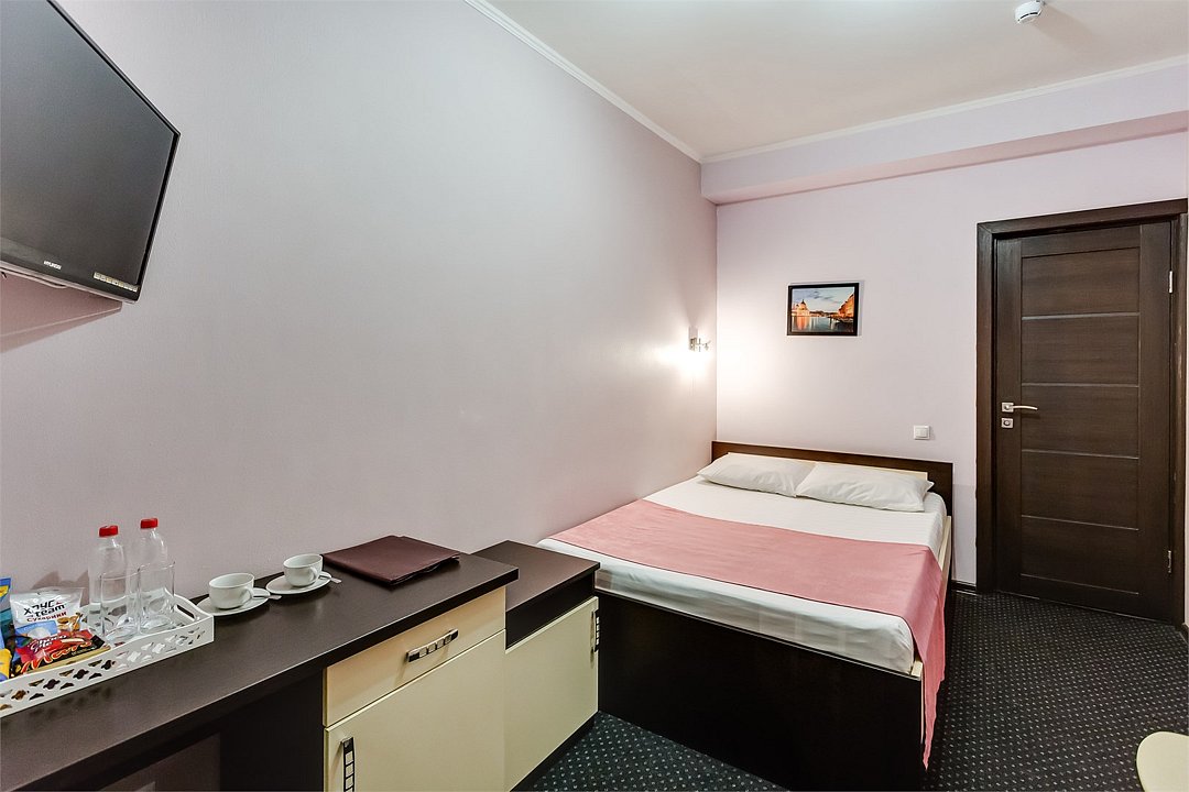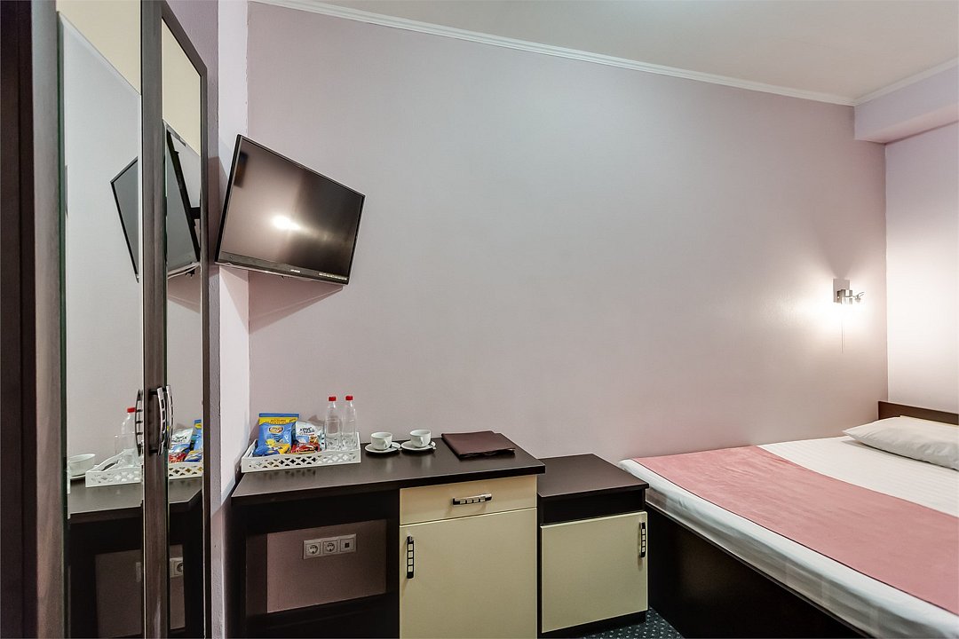 Уютный номер оборудован собственной ванной комнатой с душем. Гостям предоставляются бесплатные туалетные принадлежности, полотенца и фен. Номер с примерной площадью в 18 кв. м., имеется телевизор с плоским экраном и бесплатный wi-fi. В номере отсутствуют окна.Услуги и удобства