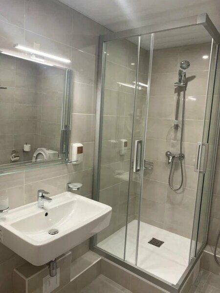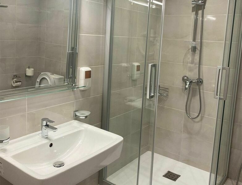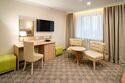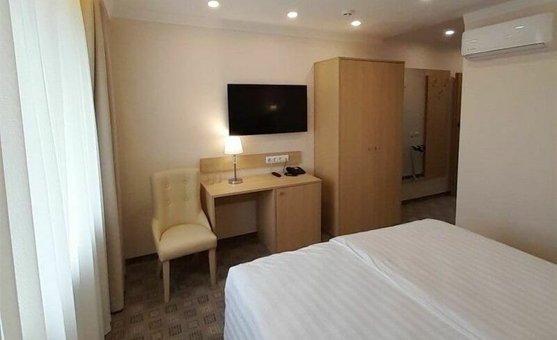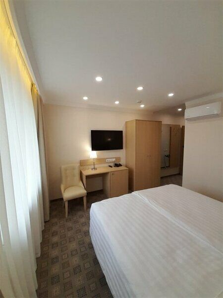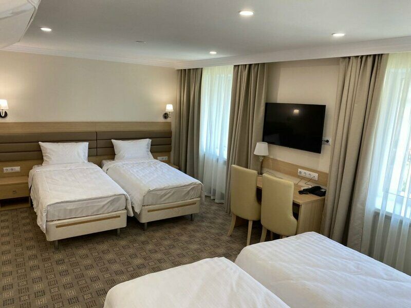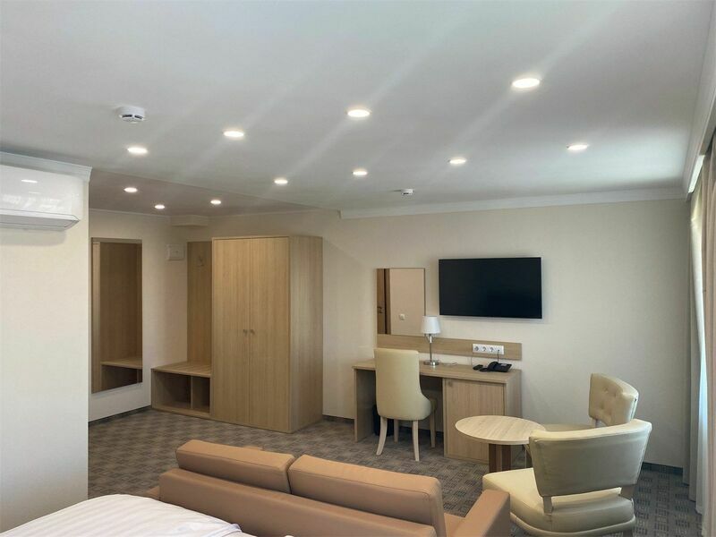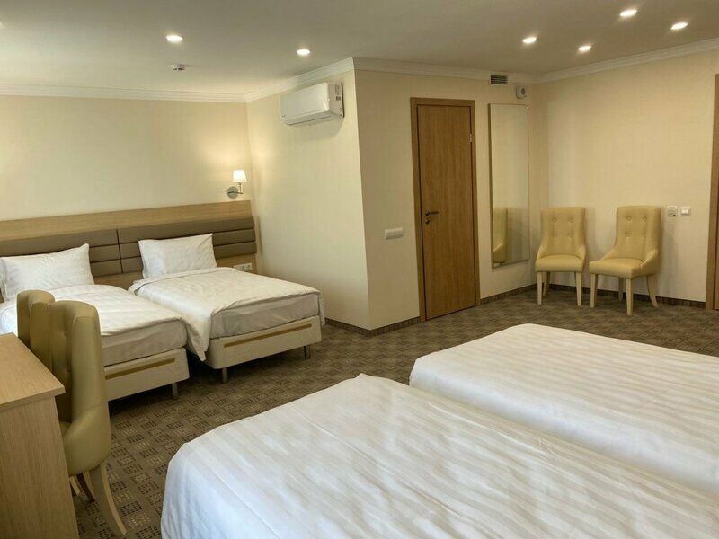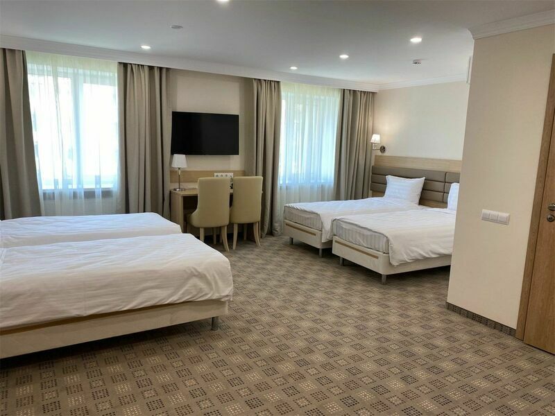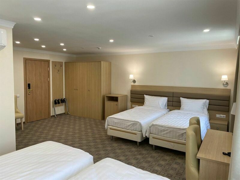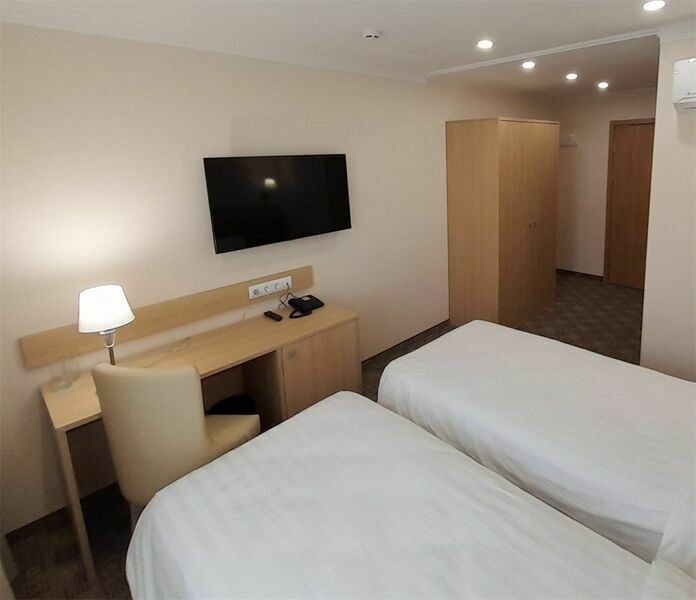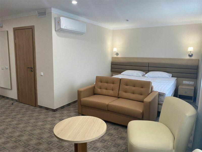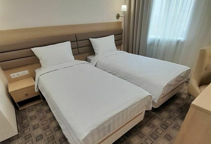 Гостиничный корпус представляет собой девятиэтажное здание, оснащенное лифтом. Отель предлагает размещение в одном из 130 комфортабельных номеров. В каждом имеется собственный санузел с душевой кабиной, необходимый набор техники (кондиционер, телевизор). Гости могут бесплатно подключиться к Wi-Fi.