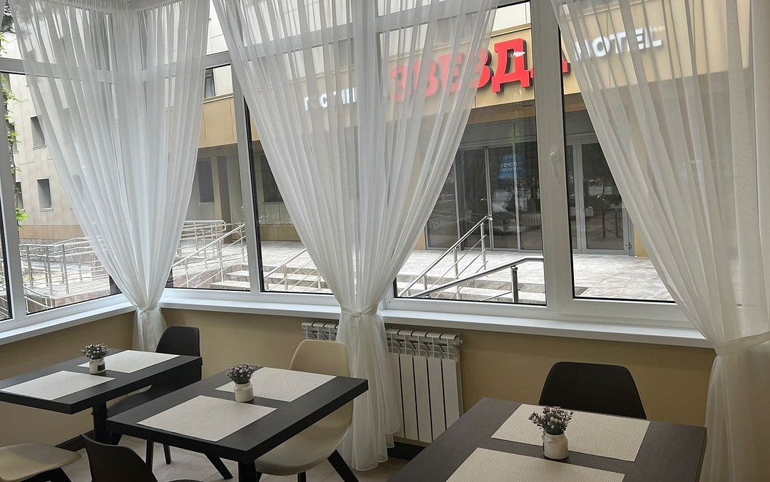 Отель «Звезда» - отличное место для проведения семейных встреч и деловых мероприятий. Вы можете арендовать банкетный или конференц-зал в ресторане "Ассамблея", который расположен на первом этаже гостиницы. За дополнительную плату можно заказать завтрак в ресторане, организованный по системе "Шведский стол".