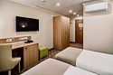 В просторном номере установлены четыре одноместные кровати. Дети от 0 до 5 лет : Завтрак шведский стол бесплатно для детей до 5 лет. С 5 лет полная стоимость. Номер состоит из комнаты, прихожей и ванной комнаты. Общая площадь номера 33 кв.м. Оснащение номера: четыре односпальные кровати, набор мебели (стол, стулья, тумба, шкаф), сплит-система, мини-холодильник, телевизор. В стоимость номера включен доступ WI-FI.Услуги и удобства