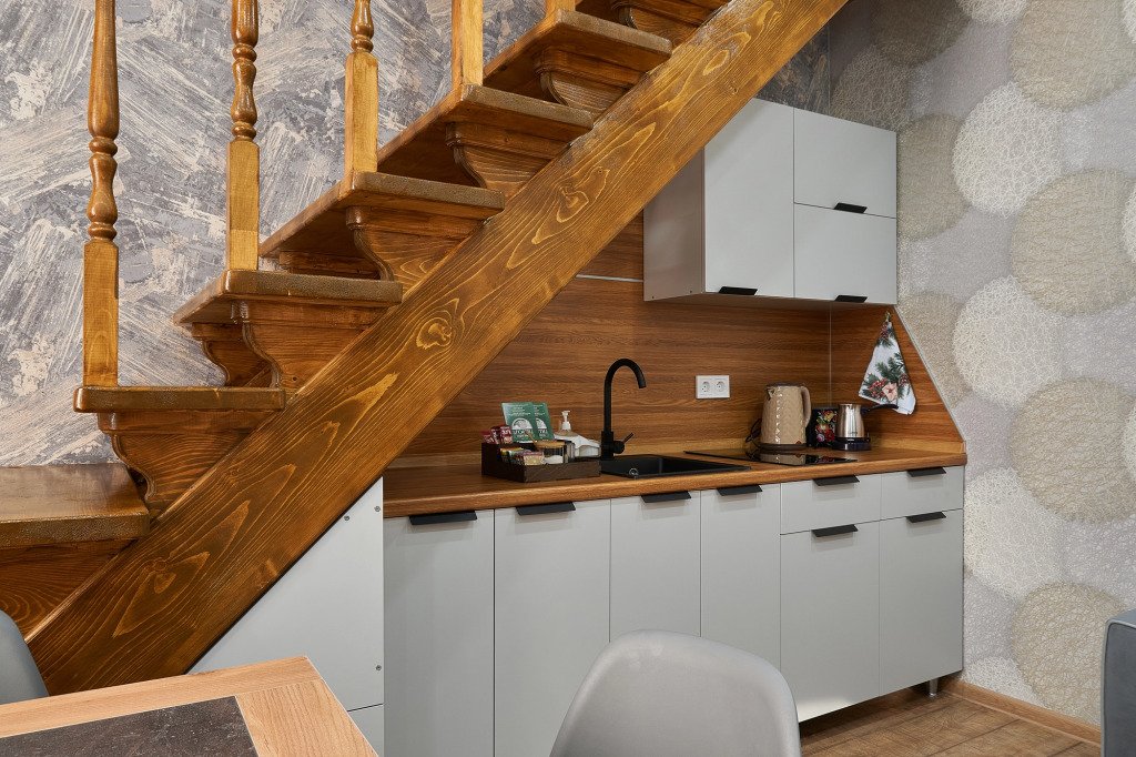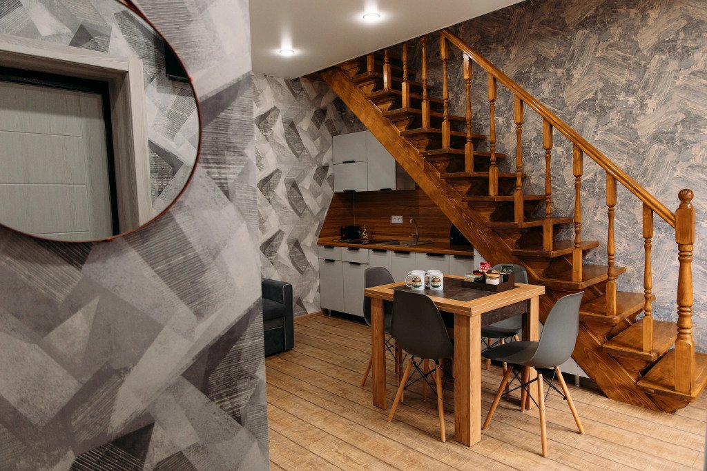 Гостевой дом представляет собой семь современных двухэтажных номеров с отдельным входом, вместимостью от 4 до 7 гостей. В каждом номере есть кухня и всё для комфортного проживания и отдыха. На территории расположены детская площадка, пинг-понг, мангалы, садовые качели и уличные беседки для вечернего отдыха семьёй или компанией друзей. Отель оборудован бесплатной парковкой.