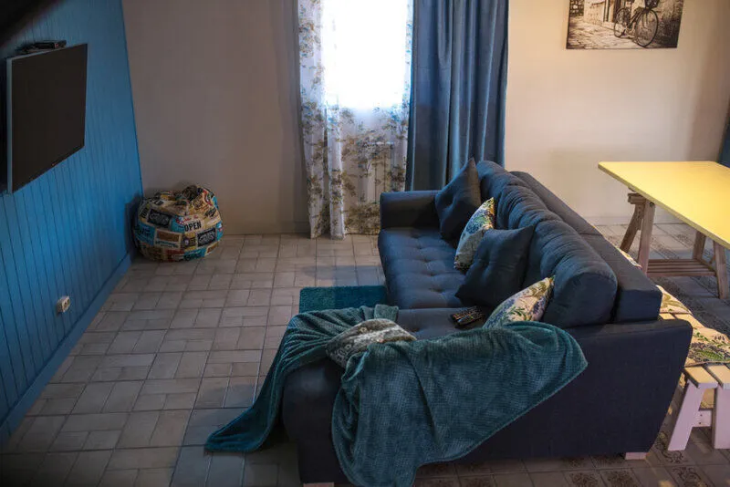 Заходишь в дом, прихожая, а потом открывается огромное пространство, кухня совмещенная с гостиной, большой стол на всю семью или компанию. Удобнейший диван с телевизором (кабельное с каналами для деток и для взрослых))
