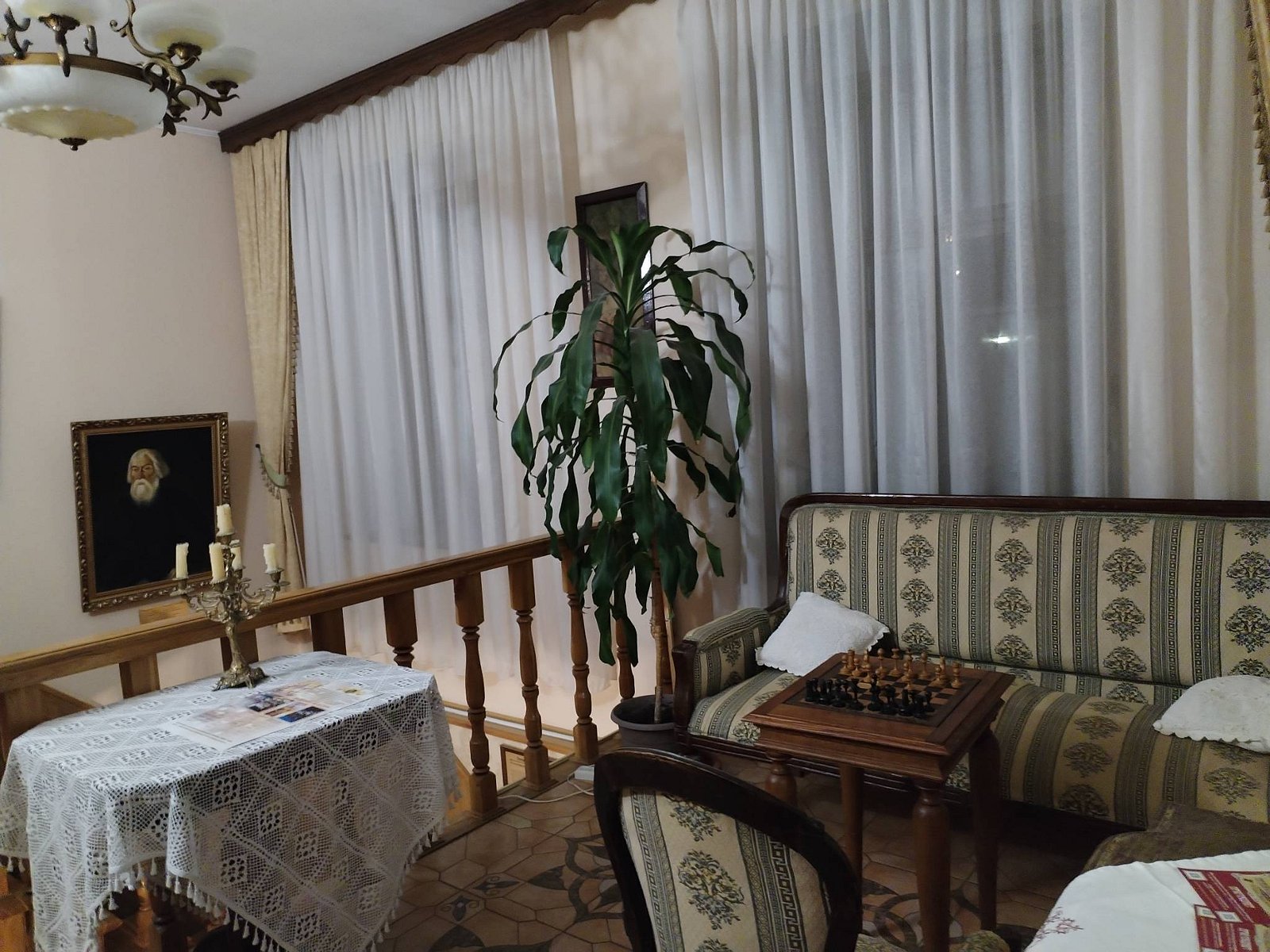 Гостиница обставлена очень интересно, внутри похожа на музей, экспонаты быта примерно начала ХХ в ухоженные и подобраны толково. Жили в люксе: по уборке и тд нареканий нет. При этом в номере было очень свежо (хотя на улице было около -7, не знаю как тут в лютые морозы, например), пришлось брать обогреватель. И если причина холода в комнатах - неудачно установленные стеклопакеты, то в ванной холод необъясним, там окон нет. Очень не хватало пола с подогревом.