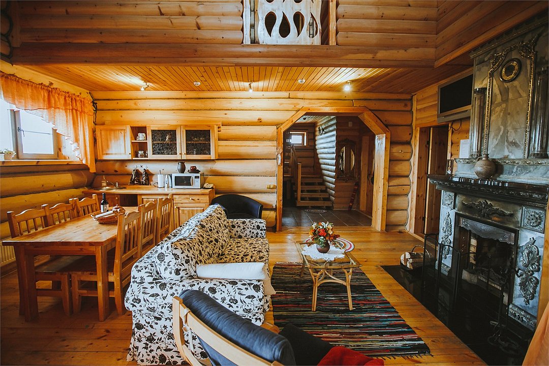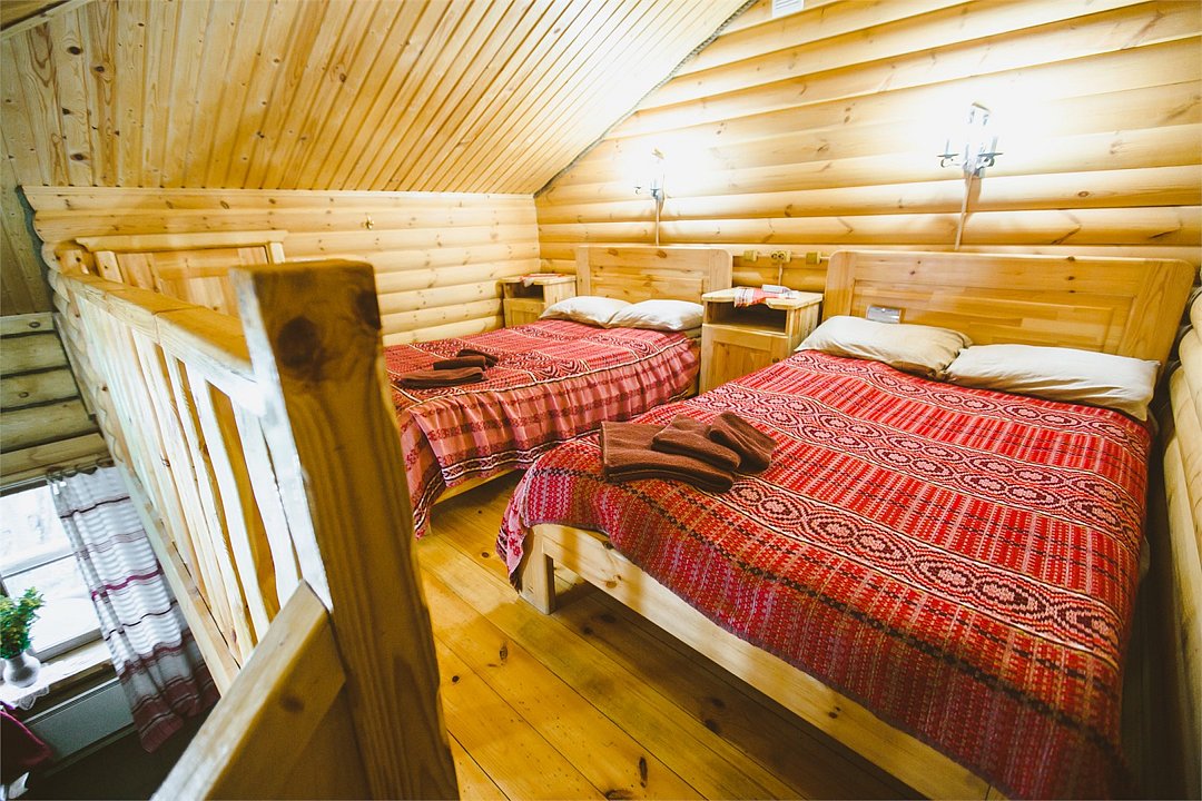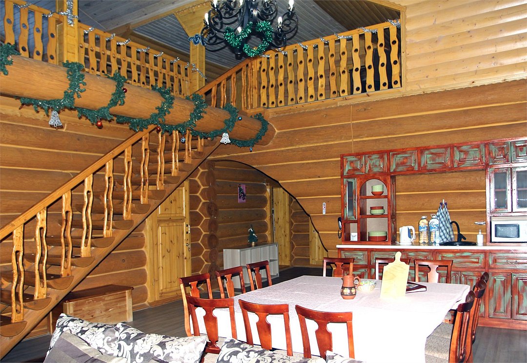 Коттедж "Купеческий" -это большой коттедж отдельно стоящий деревянный дом ручной рубки с мансардой, каминным залом, шестью отдельными спальнями Коттедж очень просторный и отлично подойдет как для проживания большой компанией, так и проведения юбилея или маленькой свадьбы. На первом этаже коттеджа «Купеческий»: прихожая, кухонная зона с большим обеденным столом, посудомоечная машина, индукционная плита и посуда для приготовления, гостиная с камином, пред которым стоит большой мягкий диван и кресло-качалка, шесть отдельных спален, запирающихся под ключ. В каждой спальне две полутора спальные кровати, санузел с душевой кабиной и туалетом, телевизор, платяной шкаф. На втором этаже коттеджа: огромная зона отдыха с диванами, ротанговой мебелью и настольным теннисом. Здесь есть дополнительный санузел. Площадь второго этажа позволяет разместить стол для проведения банкета до 20 человек. В доме для Гостей имеется: телефон, электрочайник, СВЧ-печь, холодильник, фен в каждой спальне, набор полотенец и посуда для каждого Гостя, постельное белье. Коттедж рассчитан от 12 человек на основных местах и предусматривает возможность установки до 10 дополнительных мест. Коттедж "Купеческий" - это элитное предложение отдыха на природе!Услуги и удобства