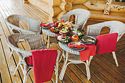 Коттедж "Семейный"-это двухэтажный дом, разделенный на две части, состоит из двух номеров с отдельным входом в каждый номер. С виду напоминает небольшой терем с просторными крытыми верандами для летнего отдыха на природе с семьей и балконами, с которых открывается отличный живописный вид на панораму комплекса. Двухэтажные дома построены из деревянных срубов (ручная рубка), крытые дранкой (по традиционной русской технологии), украшенные резными наличниками. Проживая в таком коттедже, вы несомненно окунетесь в атмосферу покоя и наслаждения. Дом разделен на два блока (номера), каждый из которых рассчитан на шестерых человек, и имеет отдельный вход и веранду. В каждом номере коттеджа «Семейный» на первом этаже: прихожая, душевая комната, туалет, гостиная с мягкой мебелью и обеденным столом, диваном и телевизором, кухонная зона с гарнитуром, электрочайником, холодильником и СВЧ-печью, В номере есть индукционная плита и посуда, в некоторых домах есть посудомоечная машина. Выход на веранду, где можно расположиться для пикника есть мебель. Второй этаж "Дом Семейный" предназначен для сна и отдыха: три спальни (с одной двуспальной или двумя односпальными кроватями). В одной из спален - выход на балкон. В каждой есть шкаф для одежды. На этаже имеется санузел. В доме так же есть телефон, фен, набор полотенец, постельное белье, а также посуда для комфортного отдыха семьей или небольшой компанией. Рядом с каждым домиком установлен мангал, пользование которым, входит в стоимость проживания. В номере коттеджа "Семейный" возможно организовать до двух дополнительных мест, так что он вполне подойдет для семейного отдыха или отдыха небольшой компанией.Услуги и удобства