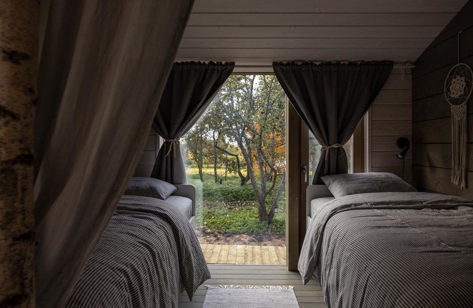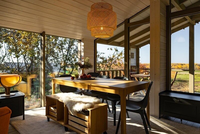 На территории есть колоритные домики в русском стиле, панорамные домики со стеклянными стенами, шатры и номера в двухэтажном флигеле. В распоряжении гостей удобные кровати, ванная комната, собственная или на этаже, бесплатный Wi-Fi.