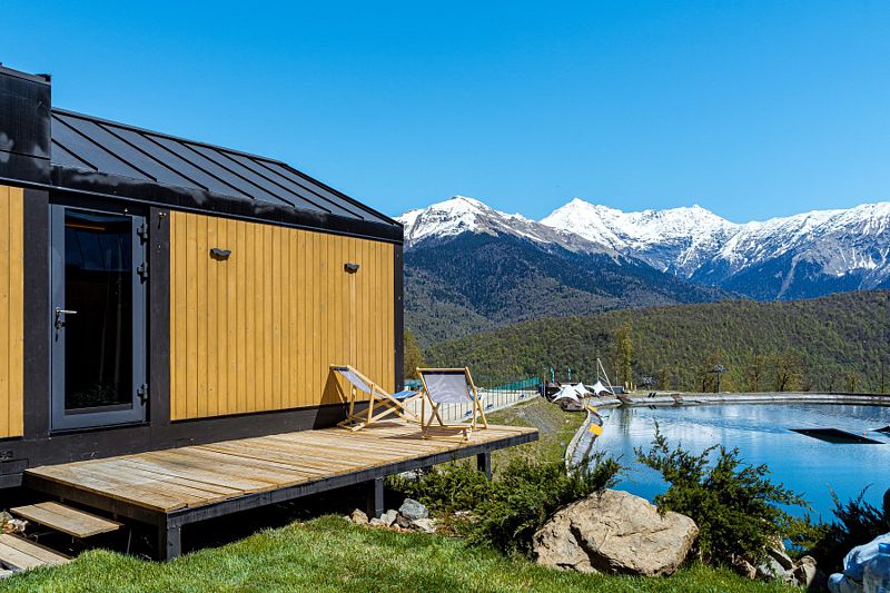 К услугам отдыхающих SPA-комплекс на территории, ресторан и кафе. Любители активного отдыха могут покататься на САПе по горному озеру, погонять на вейк-борде, совершить прогулку на велосипеде или просто прогуляться, наслаждаясь потрясающими видами.