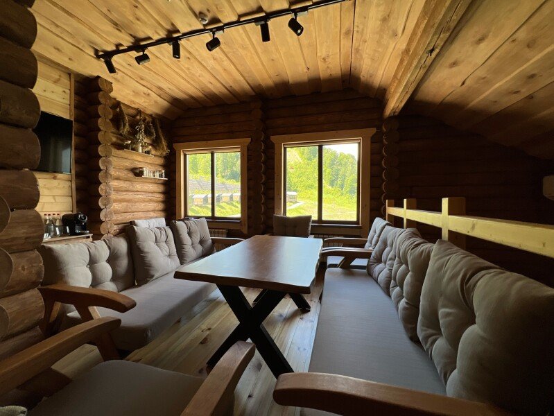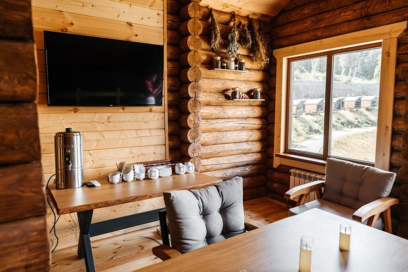 Путешествие с семьейСближение к природе !Забронировали пять суток , встретили разместили , домик чистый, вид бомбический !! На территорий кафе , баня , чан с еловыми ветками , как на картинке ! Вид на озеро просто бомба ! Очень понравилось ! Пере загрузка от городской суеты , рядом лыжная трасса . Спасибо девочки на ресепшене , очень отзывчивая на просьбы реагирует моментально.