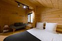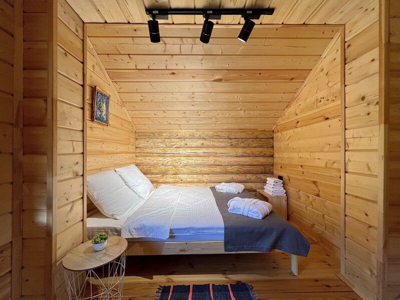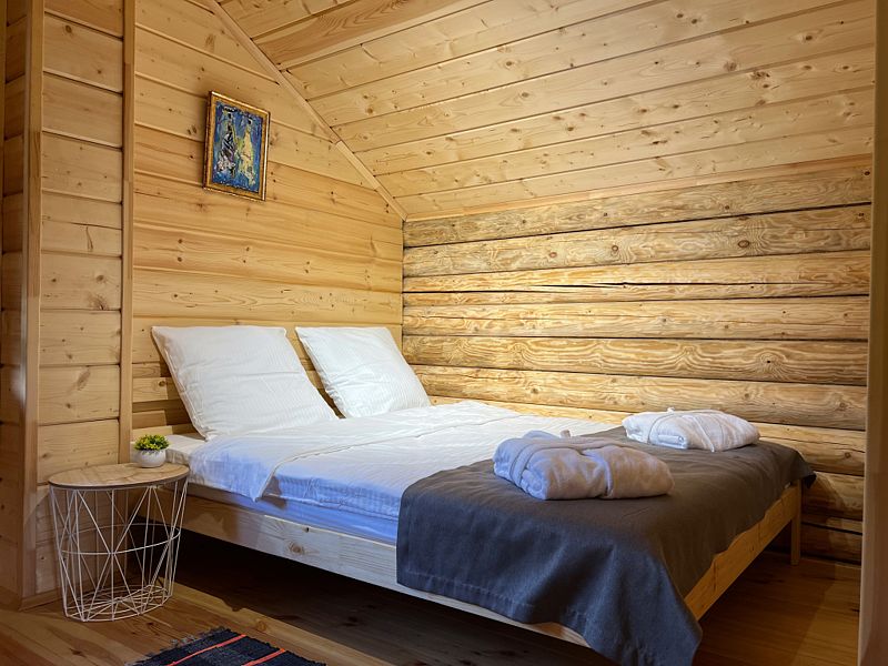 Для размещения гостей предлагается 12 компактных, комфортабельных коттеджей и большой двухэтажный коттедж с собственной баней и купелью. Для всех домов можно выбрать набор дополнительных опций.