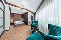 Апартаменты Комфорт Плюс (94 м²) — просторные двухкомнатные апартаменты с отдельной спальней (кровать 160×200) и гостиной для 2-6 гостей. В номере: стационарный диван в гостиной + дополнительное место (еврораскладушка по запросу). Идеальное сочетание простора и уюта для семейного отдыха (возможна детская кроватка). Интерьер и планировка могут отличаться, сохраняя высокий стандарт комфорта. Вид на лес.Услуги и удобства