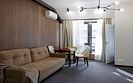 В номерах стильный сдержанный интерьер, выдержанный в приятной цветовой гамме с использованием благородных шоколадных оттенков. Комнаты оснащены санузлом с душем, сплит-системой, есть телевизор-ЖК и мини-кухня с необходимой бытовой техникой.