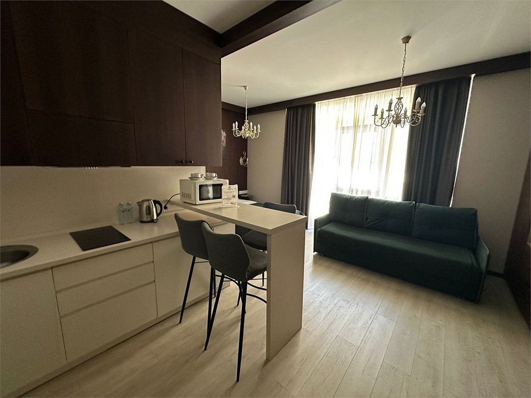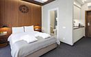 Апартаменты Классик (35 м²) — двухкомнатные апартаменты с отдельной спальней для 2-4 гостей. В номере: двуспальная кровать (140×200) в спальне и раскладной диван в гостиной. Идеальное сочетание комфорта и функциональности для семейного отдыха. По запросу доступна детская кроватка. Дизайн, планировка и вид из окна могут отличаться.Услуги и удобства