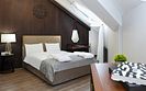 Стандарт Мансарда (20 м²) — уютный номер на 6 этаже с двуспальной кроватью (140×200) для 1-2 гостей. Мансардные окна создают особую атмосферу и наполняют пространство горным очарованием. Идеальный вариант для романтического отдыха (по запросу доступна детская кроватка). Особенности планировки и интерьера могут варьироваться.Услуги и удобства