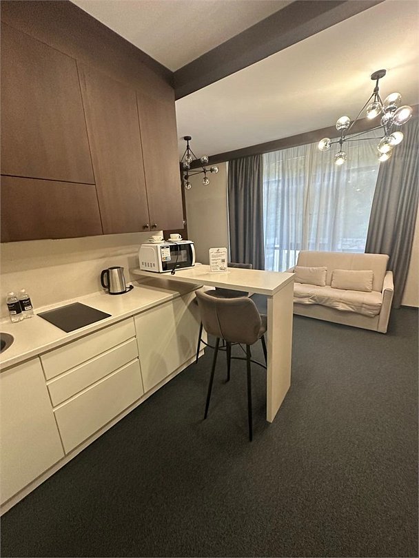 Wi-Fi, холодильник, фен, электронные замки, плита для приготовления пищи, микроволновая печь, утюг, ванная комната, халаты, банные полотенца, тапочки, гигиенические средства, косметические средства, двуспальная кровать, гладильная доска, шкаф для одежды, вешалки, эксклюзивная мебель, две комнаты, кухня, чайный набор, набор посуды, сейф, чайник, раковина, питьевая вода, гостиная зона, отопление, душ, вид на город, кухонная посуда, стаканы, кухонная утварь, столовые приборы, туалетные средства, туалет, диван-кровать, вид на горы, телевизор со Smart TV, вид на лесВ гостиничном номере