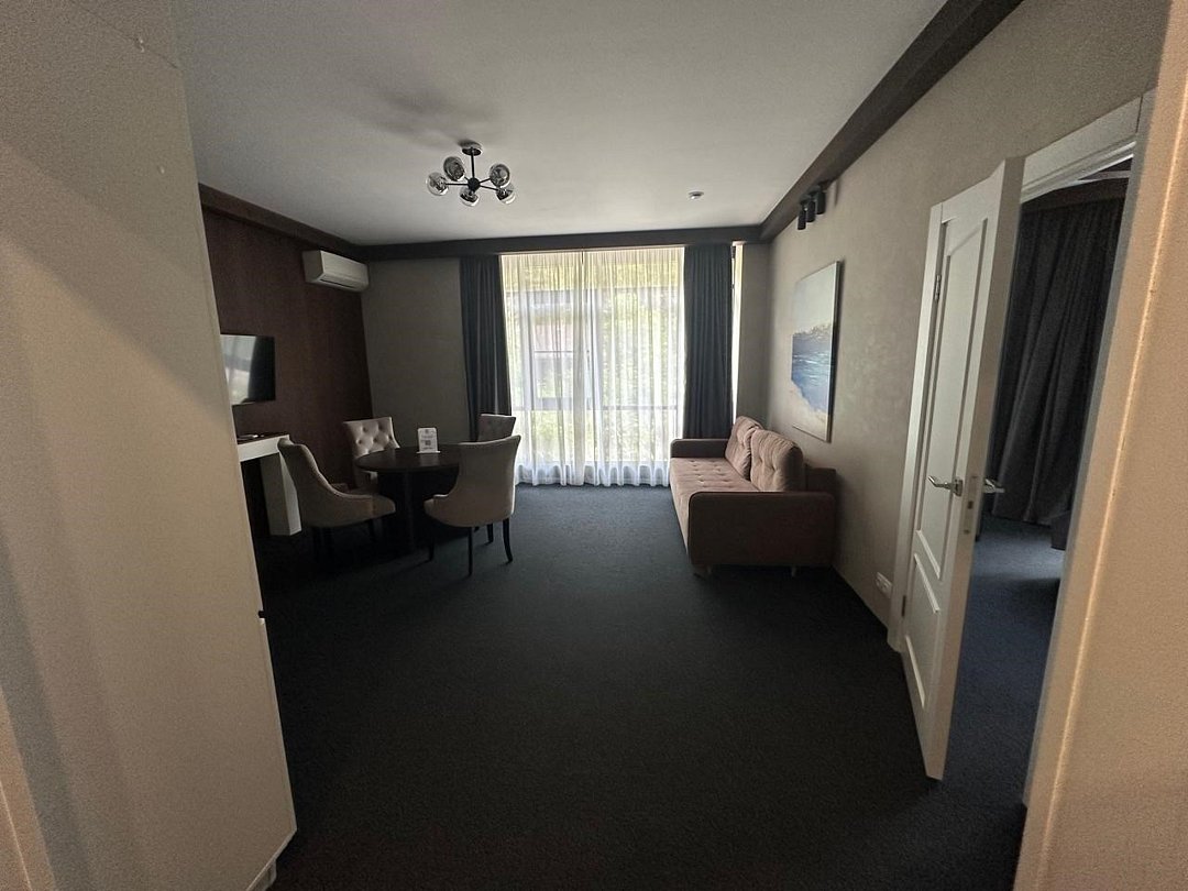 Апартаменты Делюкс (66 м²) — роскошные трёхкомнатные апартаменты для 2-6 гостей с двумя спальнями (кровати 160×200) и просторной гостиной с раскладным диваном. Идеальное решение для семейного отдыха или компании друзей (по запросу доступна детская кроватка). Интерьер и планировка могут отличаться.Услуги и удобства