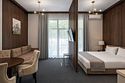 Номер с вашей личной террасой станет идеальным местом для утреннего кофе или вечернего отдыха! Комфорт с террасой (66-72 м² + терраса 11-17 м²) — роскошные двухкомнатные апартаменты с отдельной спальней (кровать 160×200) и гостиной с раскладным диваном для 2-4 гостей. По запросу доступна детская кроватка. Каждый номер обладает уникальным дизайном, сохраняя безупречный стандарт комфорта и эстетики.Услуги и удобства