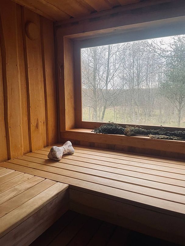 Инфраструктура: тапочки, купель, зона отдыха, полотенца, душБаня находится в отдельном доме у леса и оборудована мини-кухней и зоной отдыха. Ее можно протопить в двух режимах: сауна и русская баня. Душевая оборудована обливной системой. Парилка укомплектована красивой подсветкой и панорамным окном в лес, чтобы создать уютную и расслабляющую атмосферу. Также предусмотрена большая крытая терраса с купелью, чтобы вы могли наслаждаться свежим воздухом после парения.