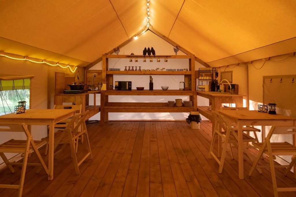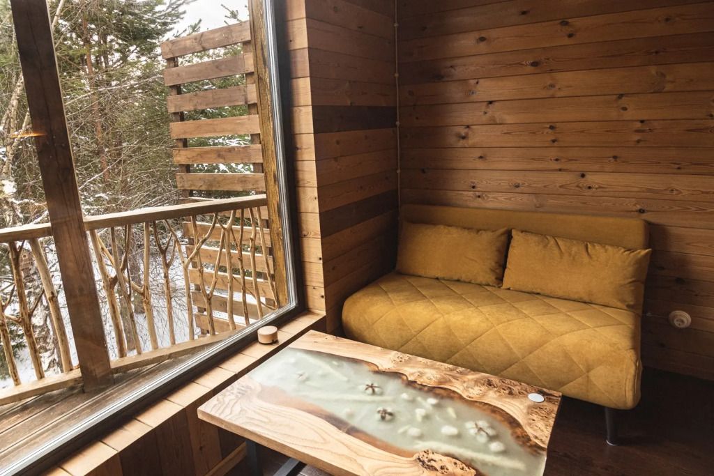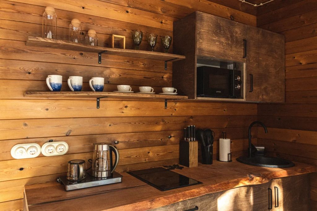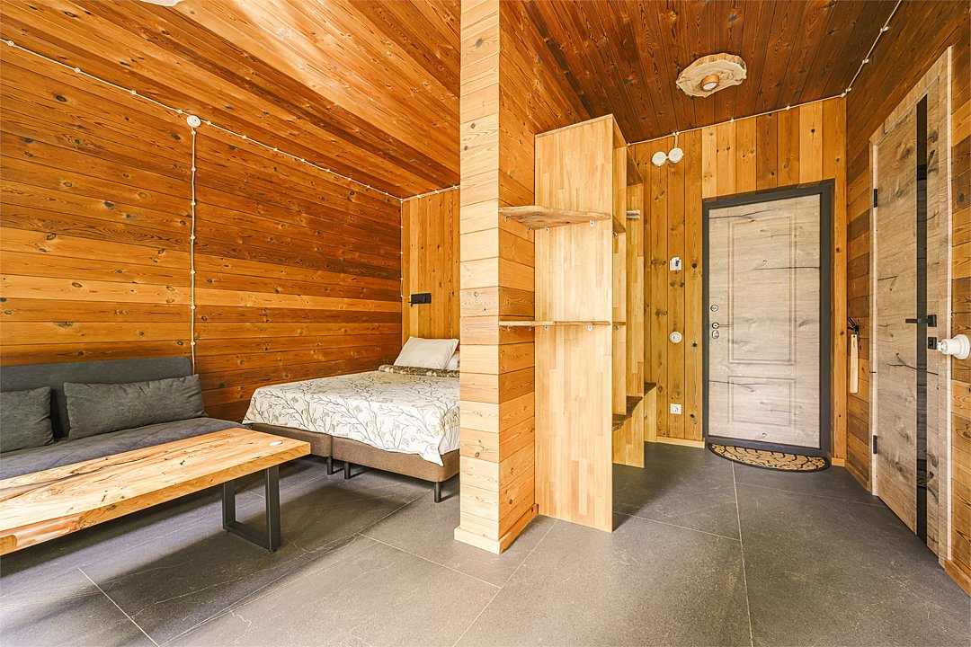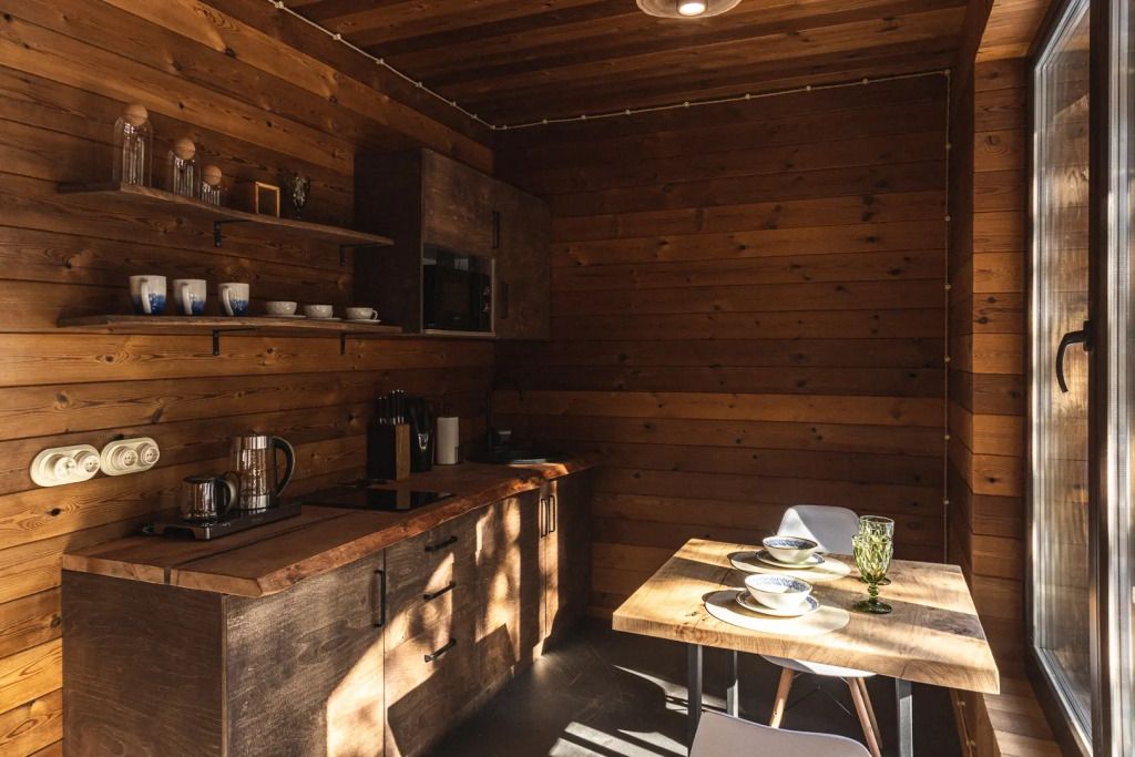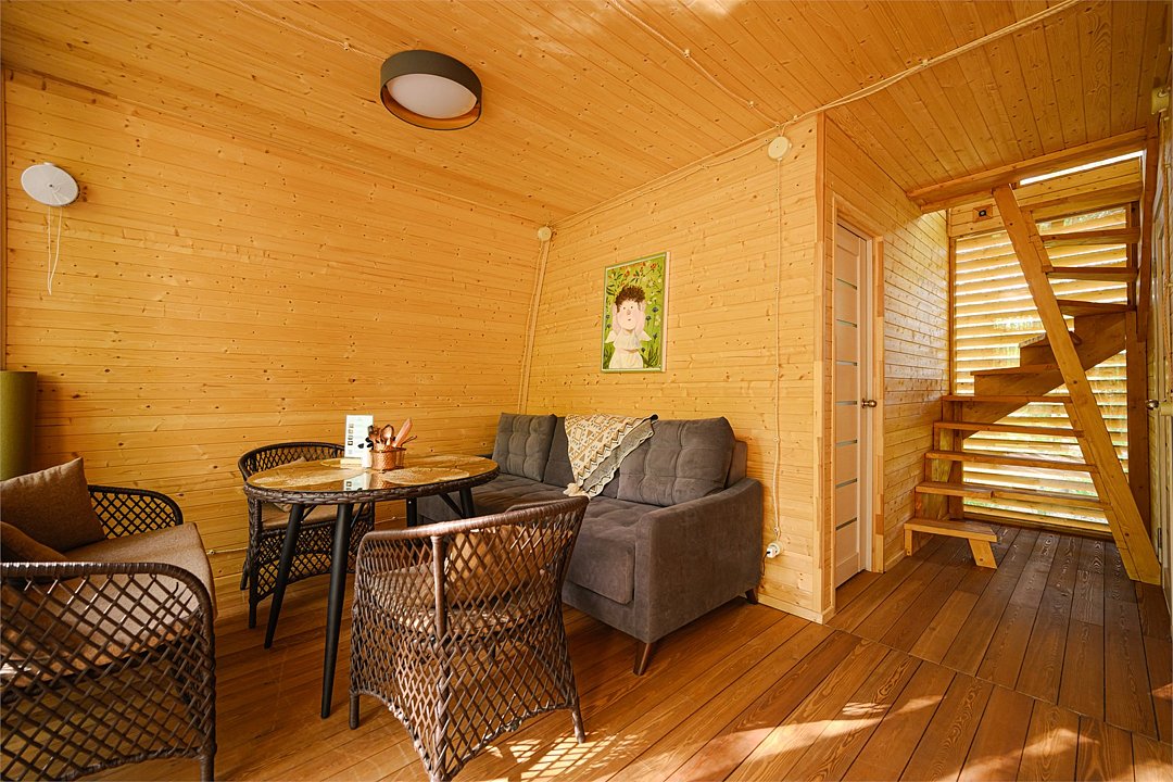 - Спальная зона – удобные кровати с ортопедическими матрасами, натуральный текстиль, одеяла и подушки из козьей шерсти, а также утяжелённые одеяла для глубокого сна. - Гостиная – уютный диван, дизайнерский стол из слэбов, музыкальная колонка «Алиса» для создания атмосферы. - Мини-кухня – всё необходимое для приготовления любимых блюд: варочная поверхность, микроволновка, холодильник, чайник, посуда. - Балкон – панорамный вид на лес, террасная мебель для комфортного отдыха на свежем воздухе. - Ванная комната – современная сантехника, душ, мягкие полотенца, фен. - Объединение номеров – возможность создать просторное пространство для семейного отдыха.Погрузитесь в атмосферу природной гармонии и комфорта. Забронируйте свой идеальный отдых уже сейчас!