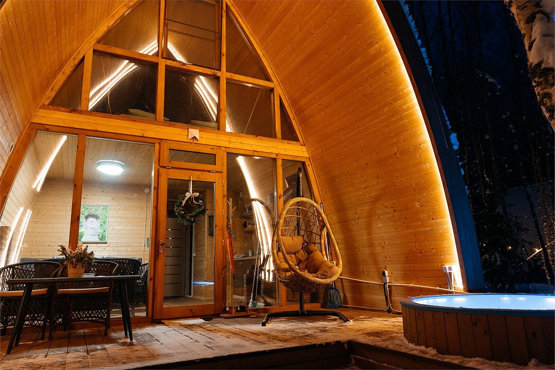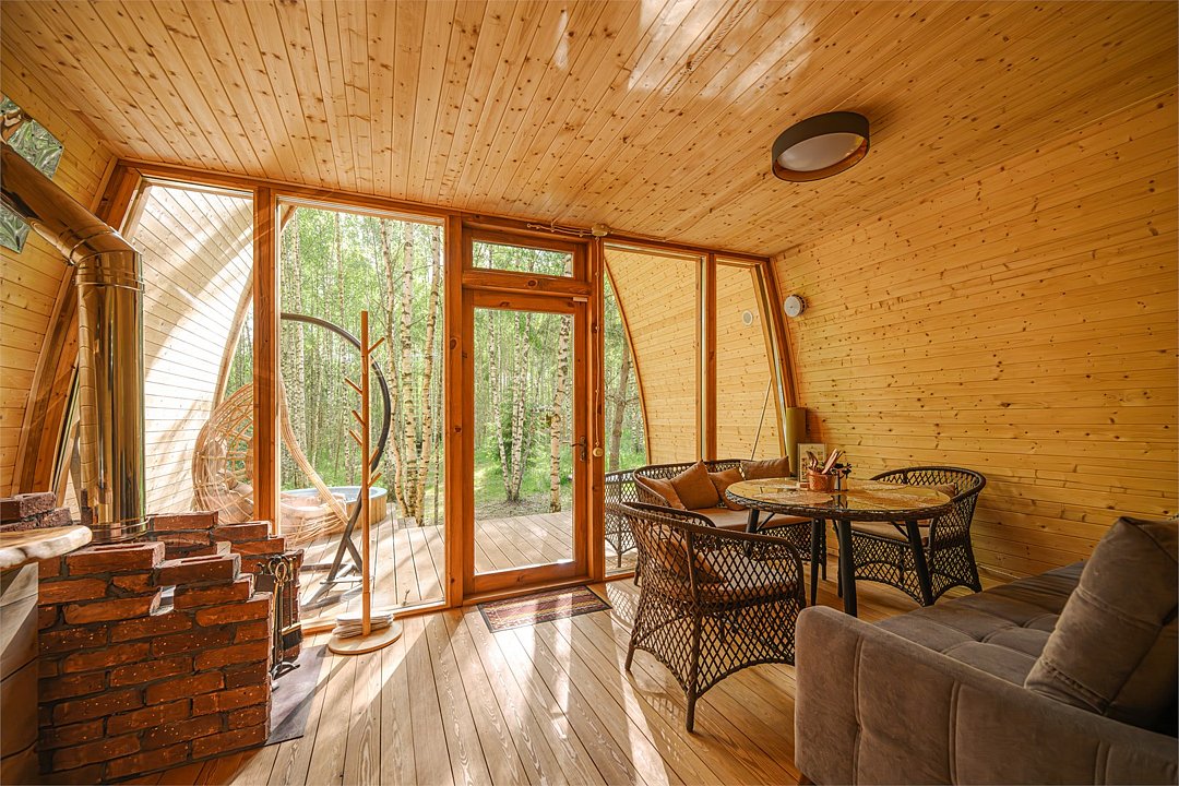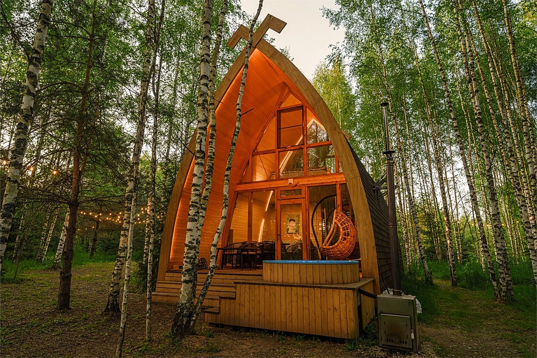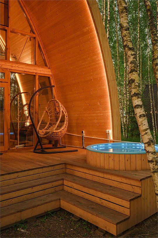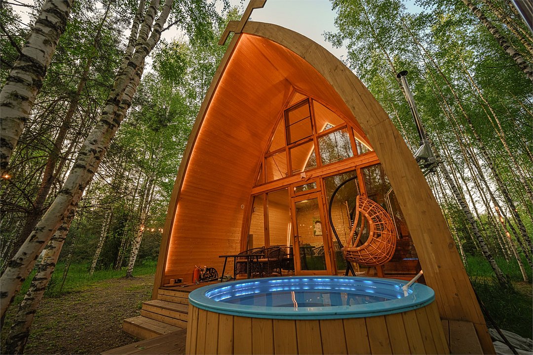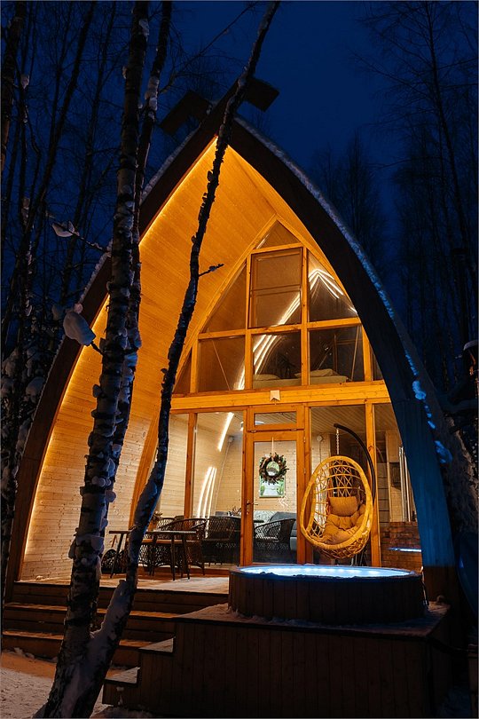 Панорамный эко-дом с горячей купелью