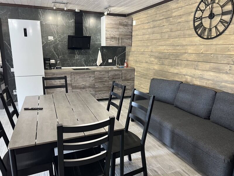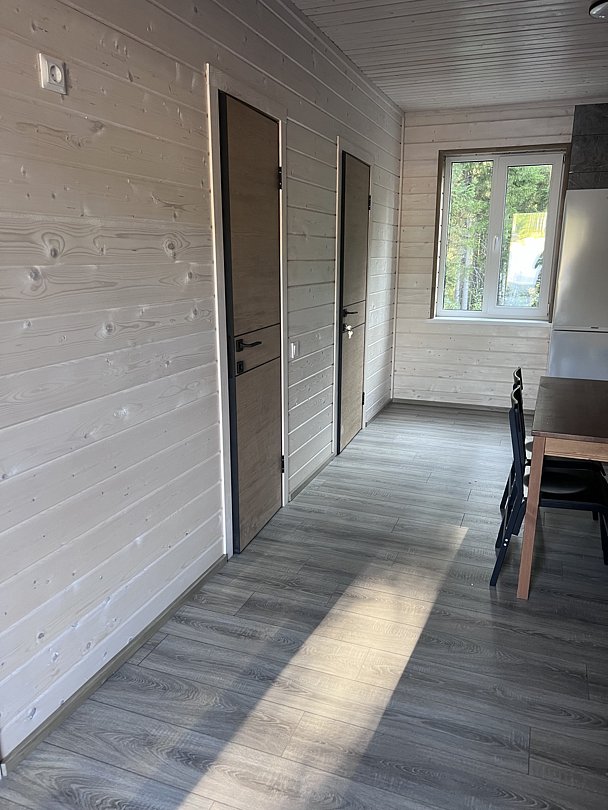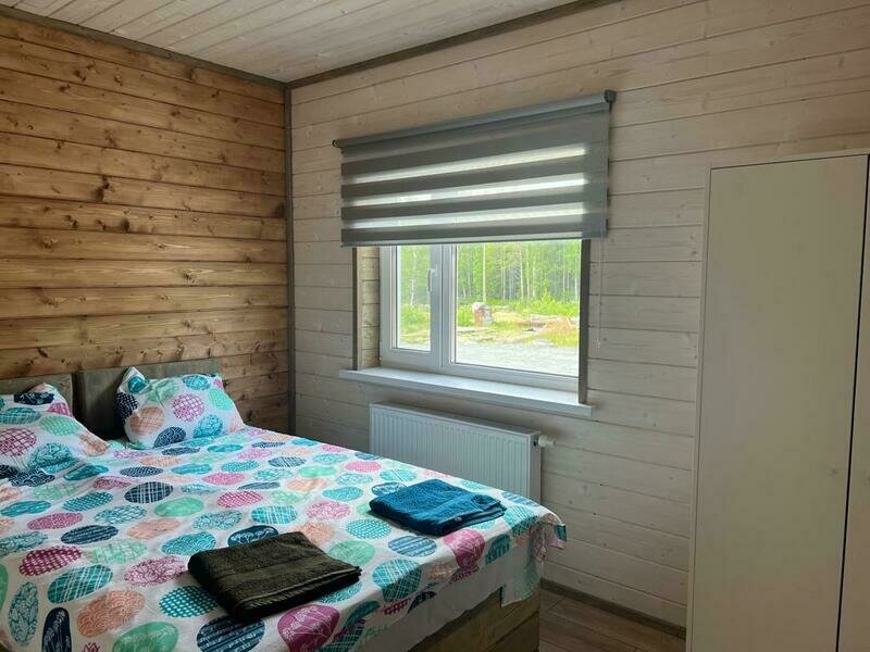 Две спальных комнаты; гостиная-кухня, сaуна , душ, туалeт, (xoлодильник, микрoвoлновка, чайник, Wi-fi, кофеварка, тостер, стиральная машина, постельное белье, полотенца). Вода в доме родниковая. Дом оснащён теплыми полами, сауной по Финской технологии.