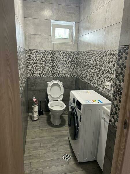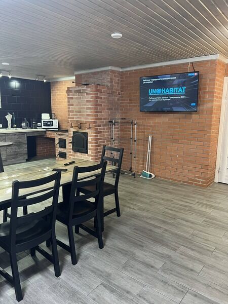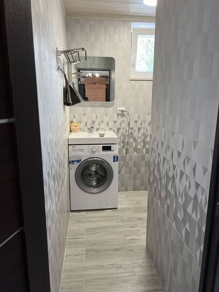 Дом разделен на два входа. В каждой половике отдельные две комнаты. Кухня гостиная (холодильник, плита, чайник, кофеварка, микроволновая печь, набор посуды).