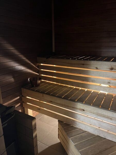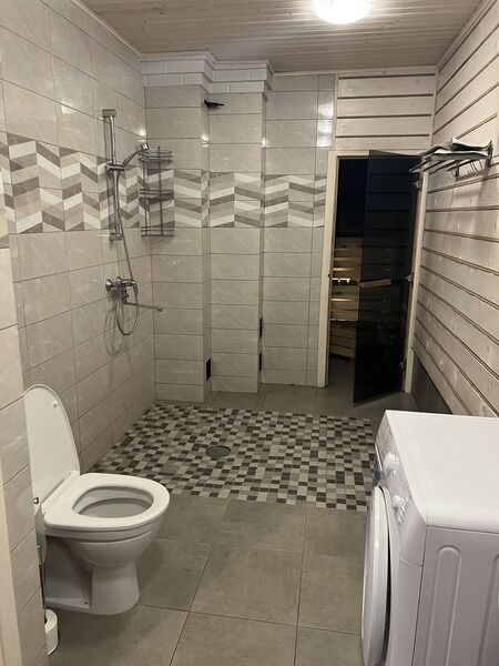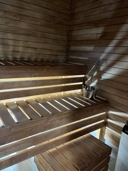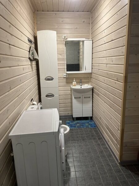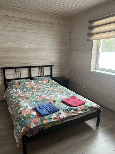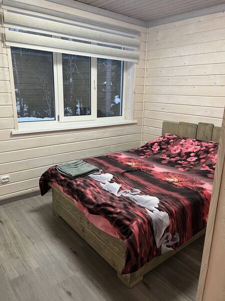 Две спальных комнаты; гостиная-кухня, сaуна нa дpовах, душ, туалeт, (xoлодильник, микрoвoлновка, чайник, Wi-fi, кофеварка, тостер, стиральная машина, постельное белье, полотенца). Вода в доме родниковая. Дом оснащён теплыми полами, сауной по Финской технологии. Летом можно купаться в речке. Вместительная парковка. видеонаблюдение. Заезд с 14 часов, выезд до 11.
