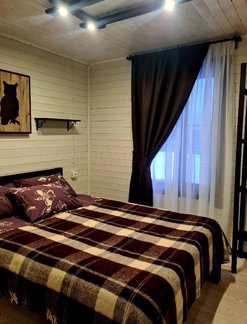 Дом для комфортного размещения на четверых человек незабываемого отдыха в Карелии. Для вашего удобства дом оснащен двумя спальнями с комплектом постельного белья, ванной комнатой (душ, туалет, полотенца), зоной гостиной, объединенной с мини-кухней, где есть вся необходимая посуда, плита, холодильник, микроволновая печь и чайник.