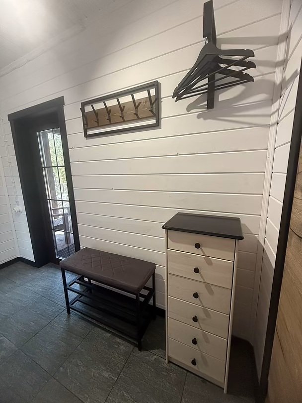 Для вашего удобства дом оснащен двумя спальнями с комплектом постельного белья, ванной комнатой (душ, туалет, полотенце), гостиной, объединенной с мини кухней, со всем необходимым (посуда, плита, холодильник, микроволновая печь, чайник). Две одноместные кровати, одна двуспальная, с двумя спальнями, кухня-гостиная, ванная комната.