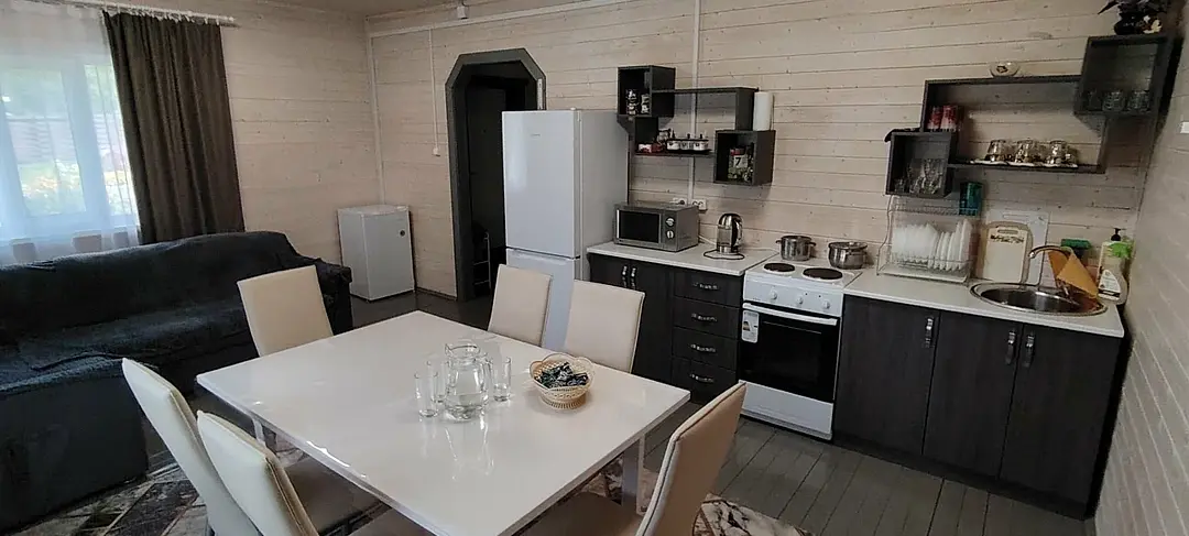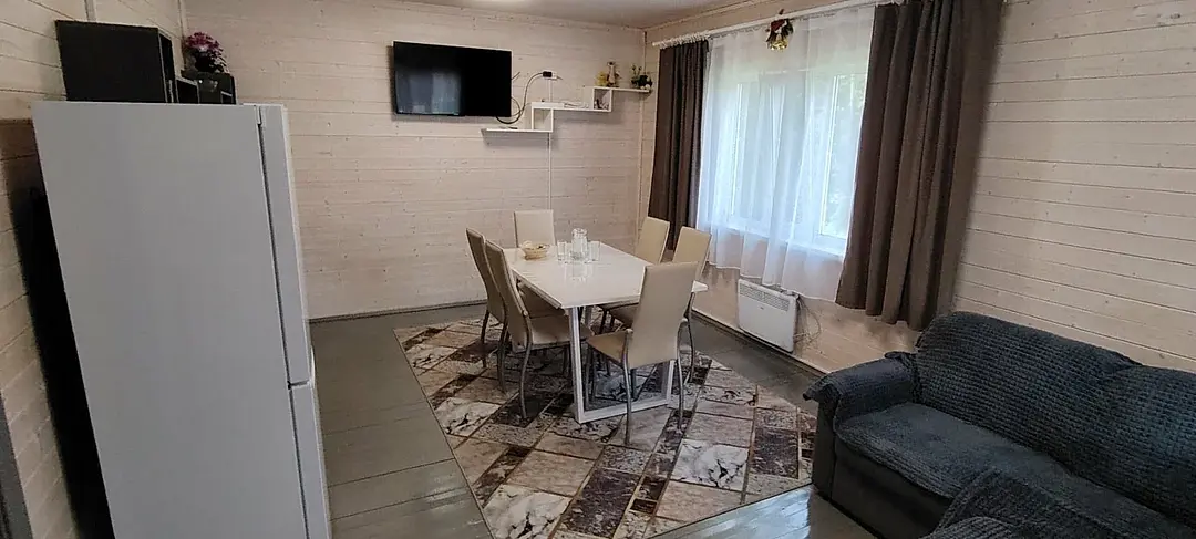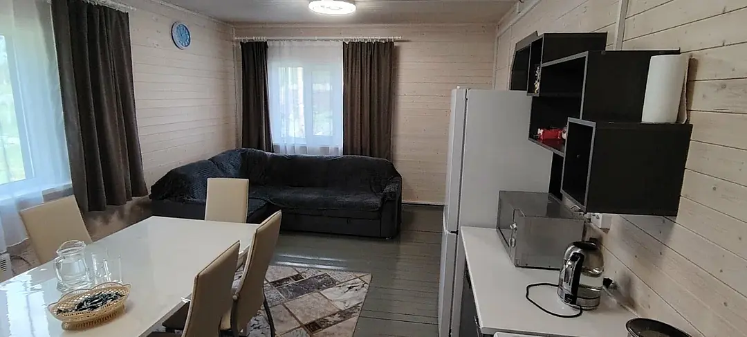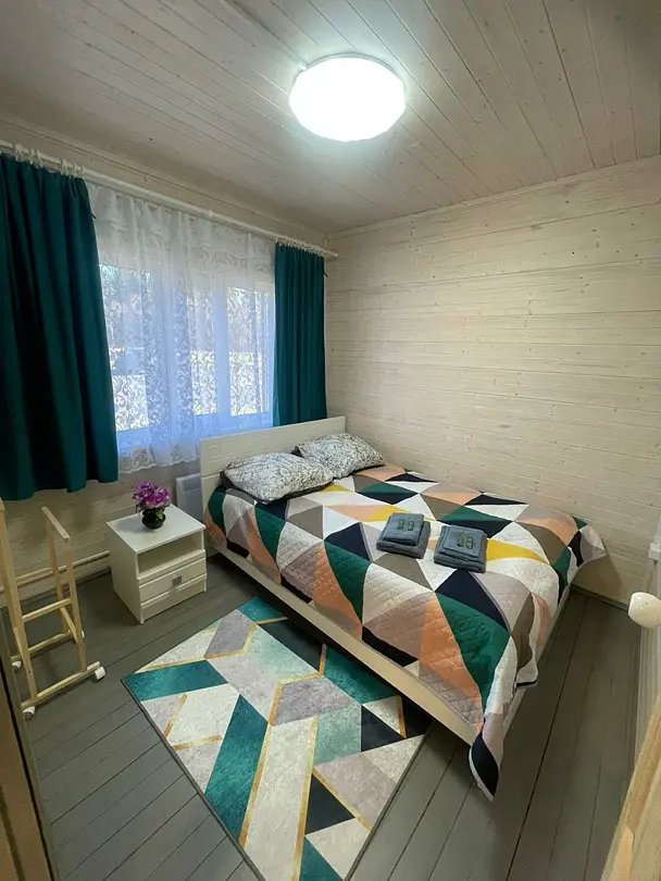 3-комнатный дом. Спальных мест: 2+2+2 (две комнаты с двуспальными кроватями, кухня-гостиная с диваном).