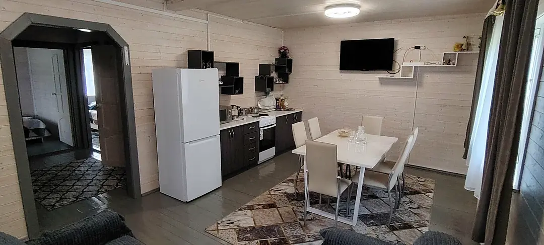 Насладитесь тишиной и красотой Карелии, остановившись в новом, благоустроенном домике в Рускеале. Этот уютный дом, рассчитанный на 6 человек, станет идеальным местом для вашего семейного отдыха. Он полностью оборудован для комфортного проживания: две спальни, удобная кухня-гостиная, современная бытовая техника и Wi-Fi. Все это включено в стоимость проживания.