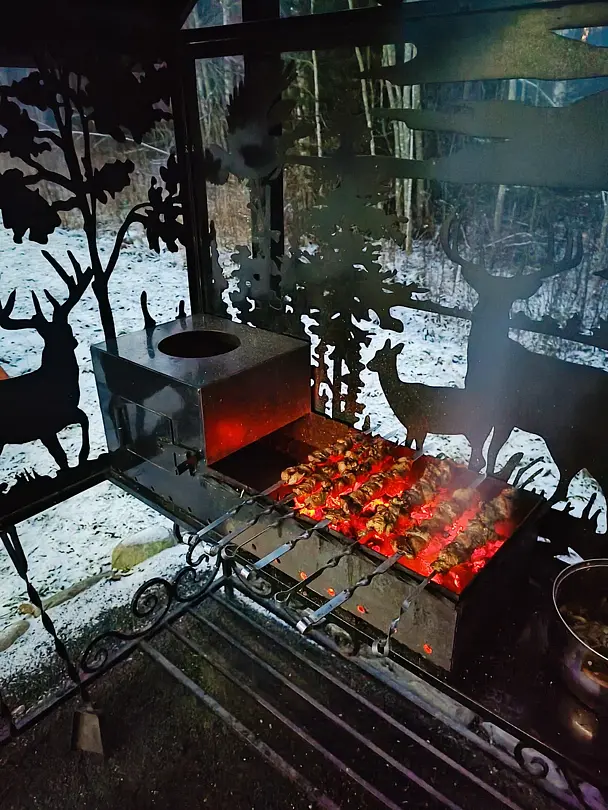 Есть мангальная зона, оборудованная всем необходимым.