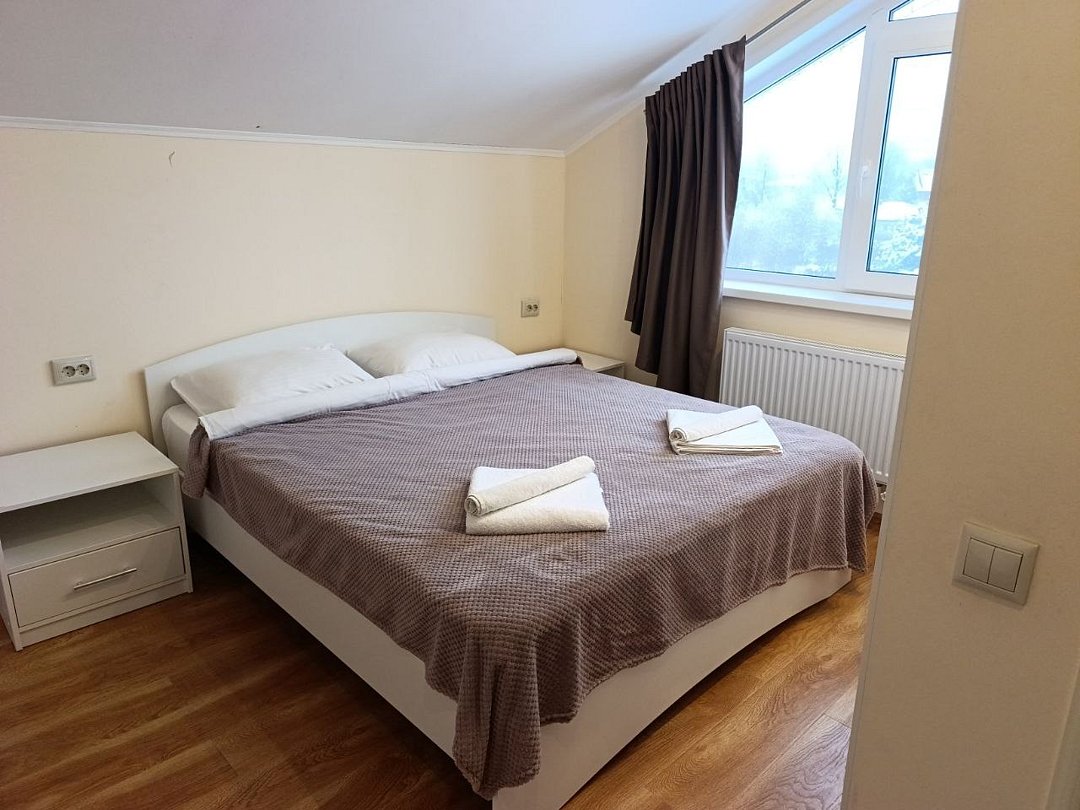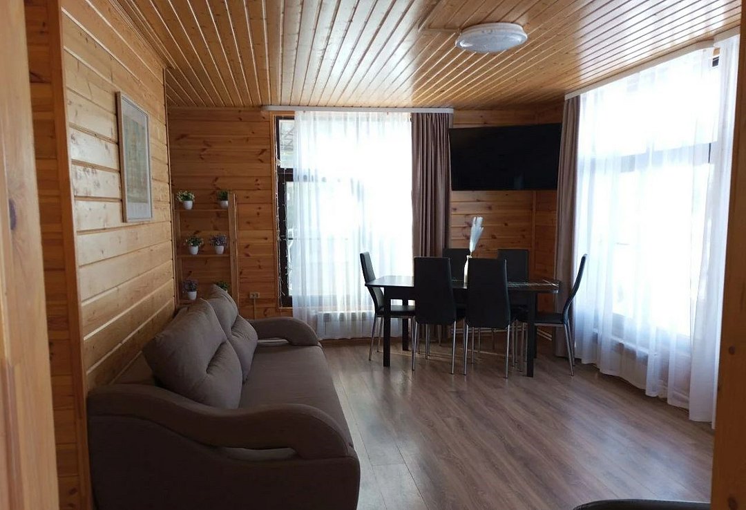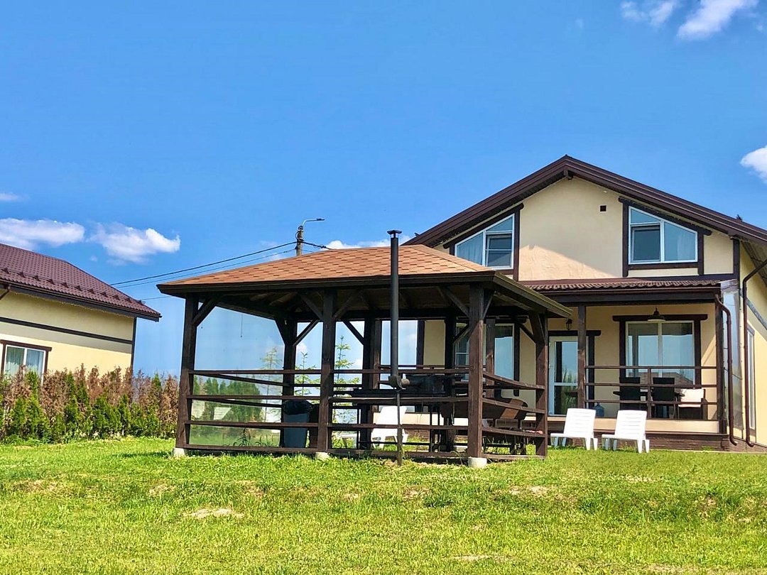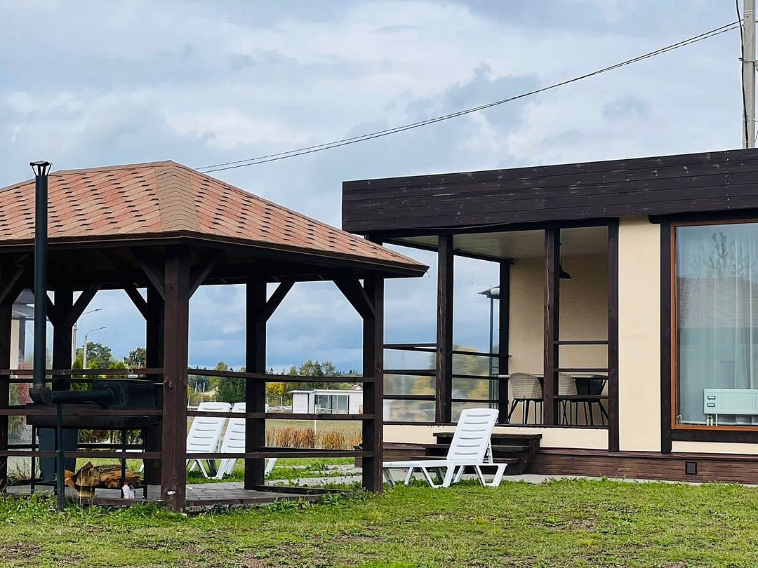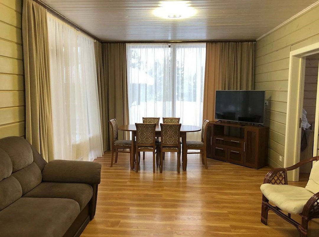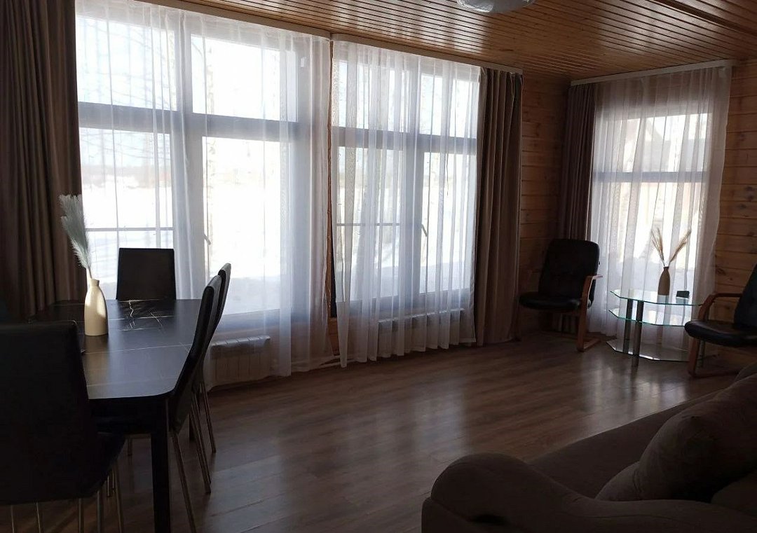 1 этаж: Гостинная, кухня, санузел с душевой кабиной, 2 этаж: 2 спальни с санузлом и душевой кабиной. Крытая беседка, стол для пинг-понга, зона барбекю, тандыр. Баня входит в стоимость на 1 сутки.Услуги и удобства