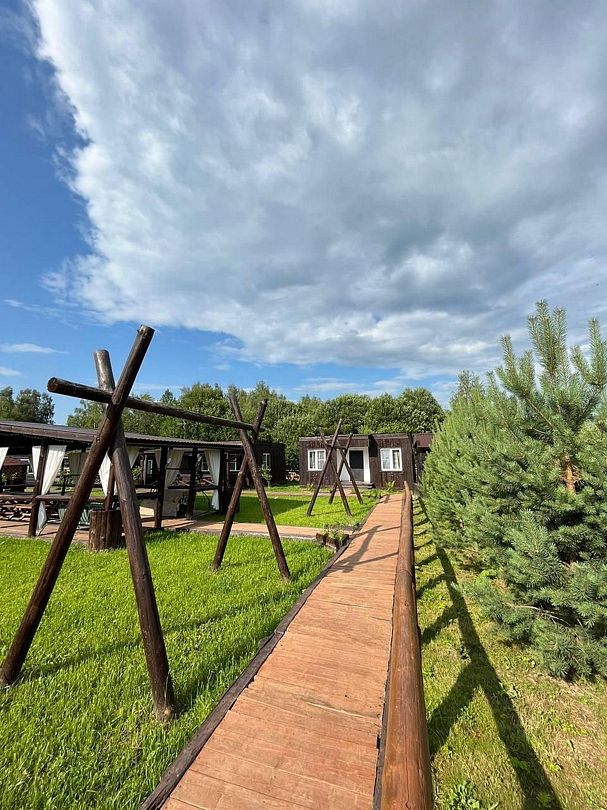 Расположение этого уникального домика также заслуживает внимания. Он находится в тихом, уединенном уголке, граничащем с живописным лесом. Рузское водохранилище всего в 800 метрах от вашего порога, предоставляя вам доступ к собственному деревенскому пляжу. Это идеальное место для спокойного и расслабляющего отдыха, где вы сможете укрыться от городской суеты и насладиться природой в полной мере.