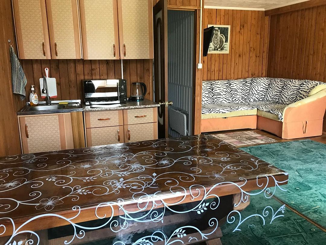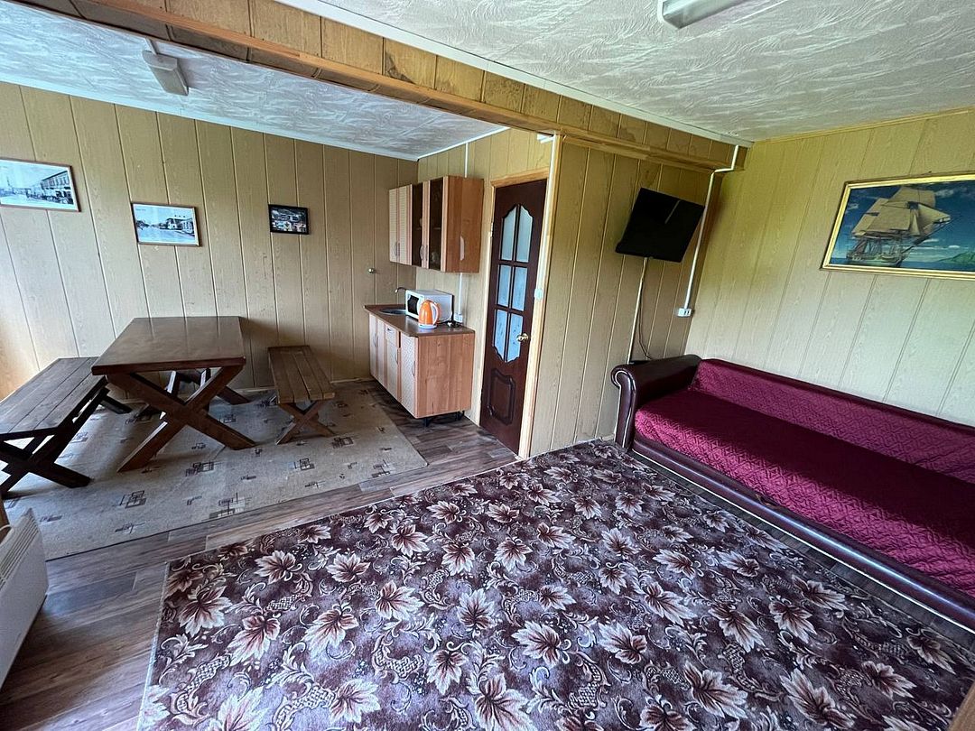 Домик рассчитан на размещение до шести человек, предлагая гостям просторную гостиную и уютную спальню. Здесь вас ждут современные удобства: холодильник, микроволновка, чайник и вся необходимая посуда.