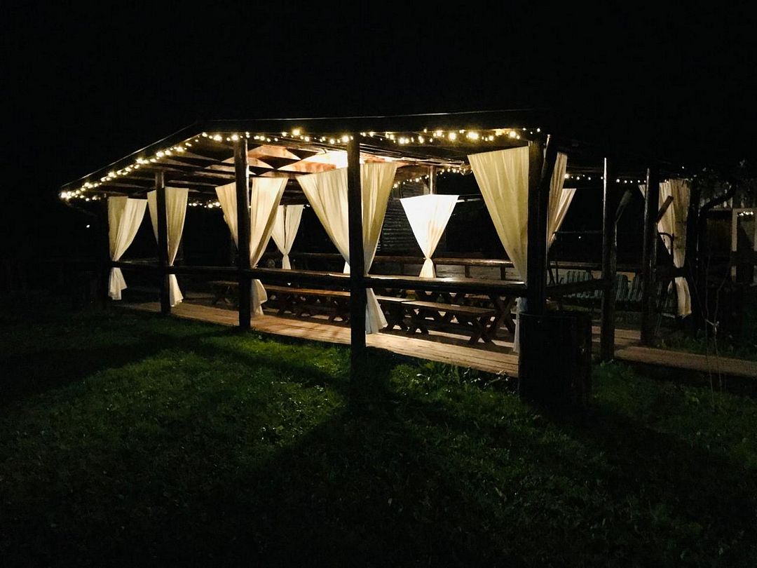 На территории гостям доступна частная баня, банкетный зал на 35 человек и беседки-гриль с мангалом, которые отлично подойдут для того, чтобы провести время на свежем воздухе.