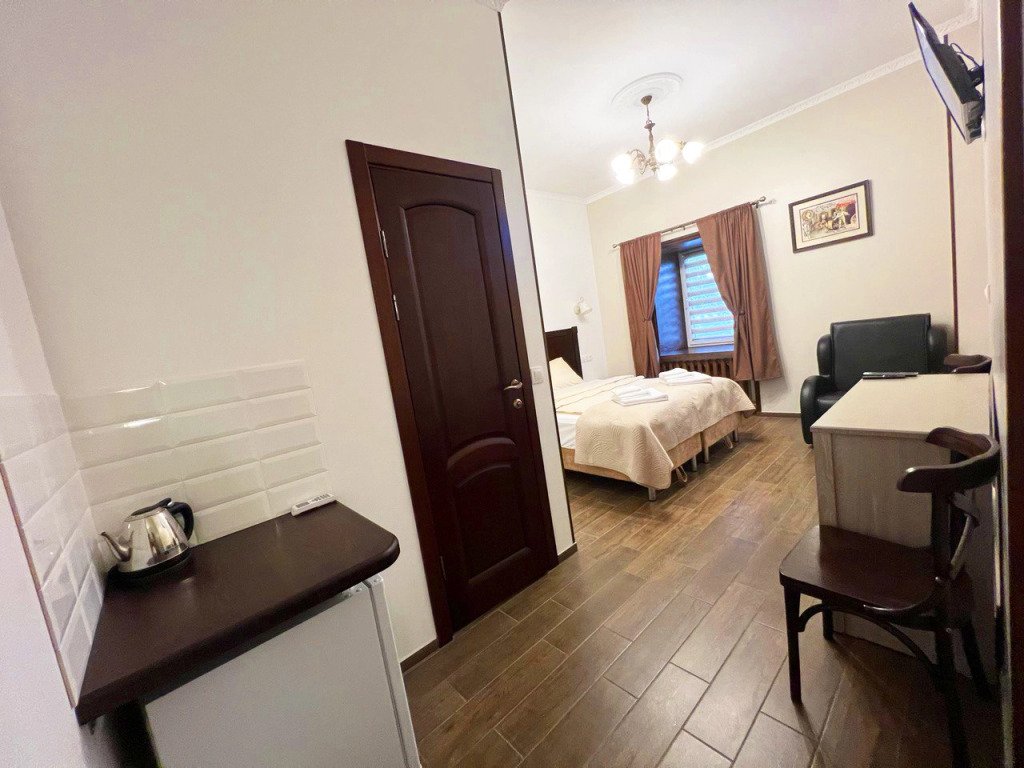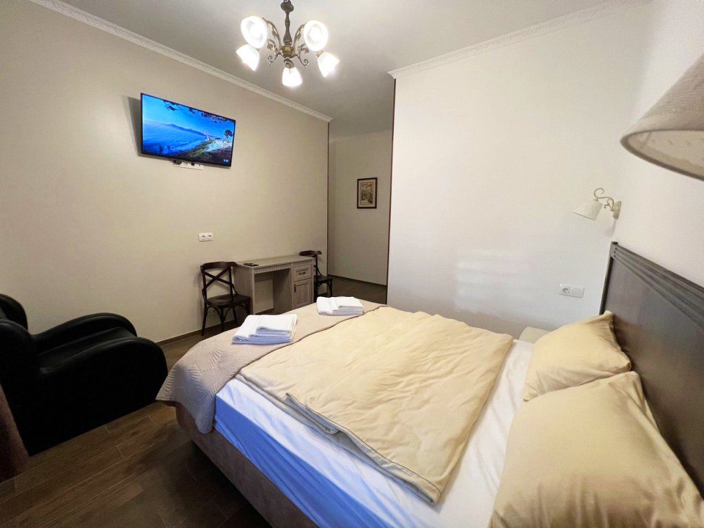 В номере вы найдёте телевизор. Оснащение зависит от выбранной категории номера.