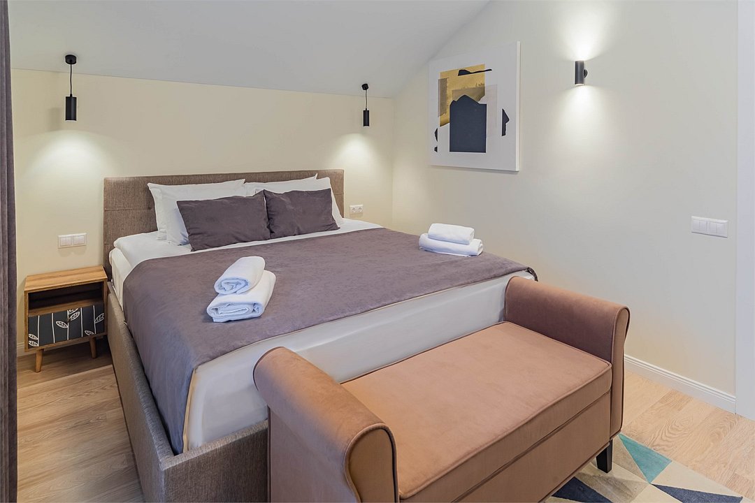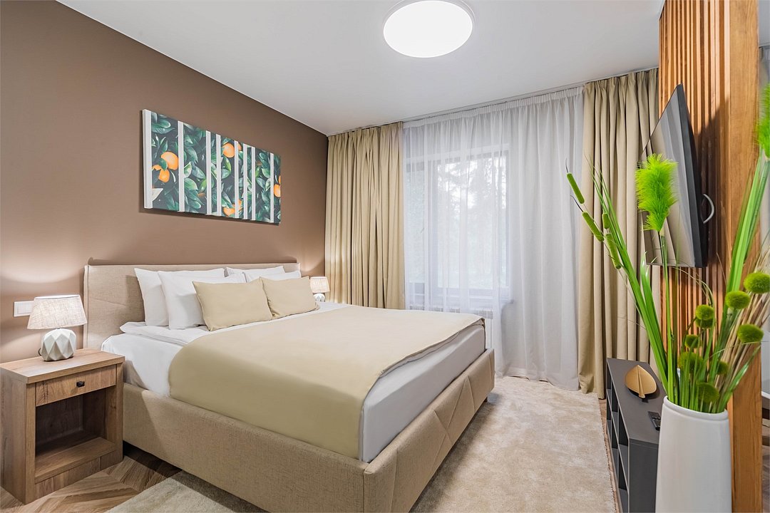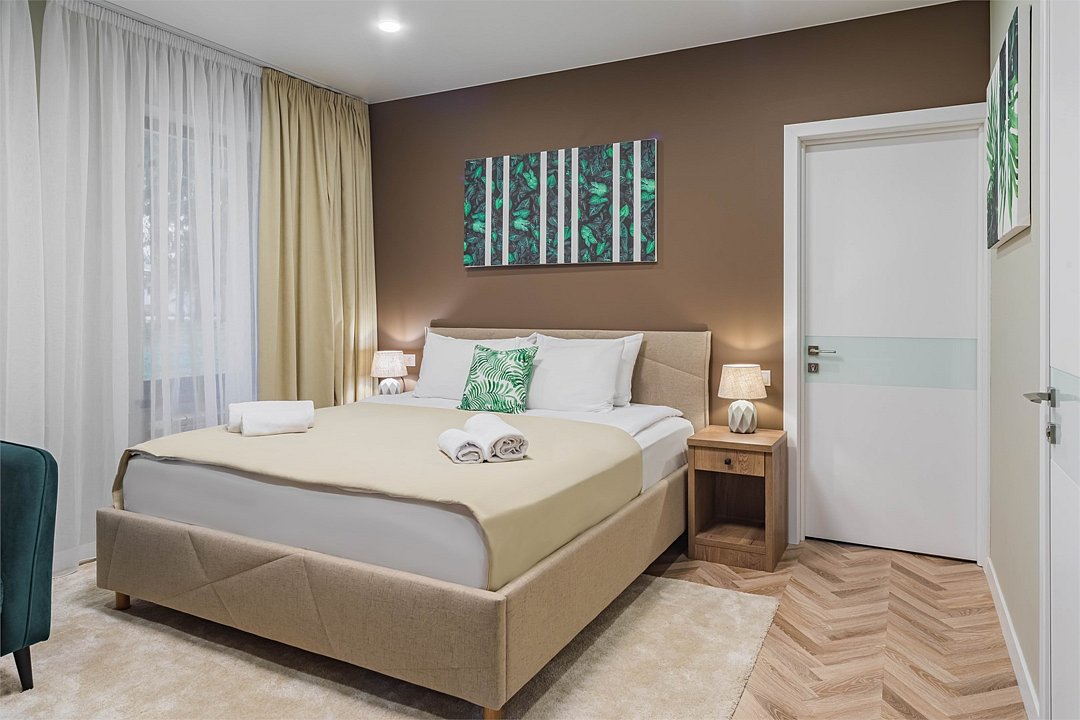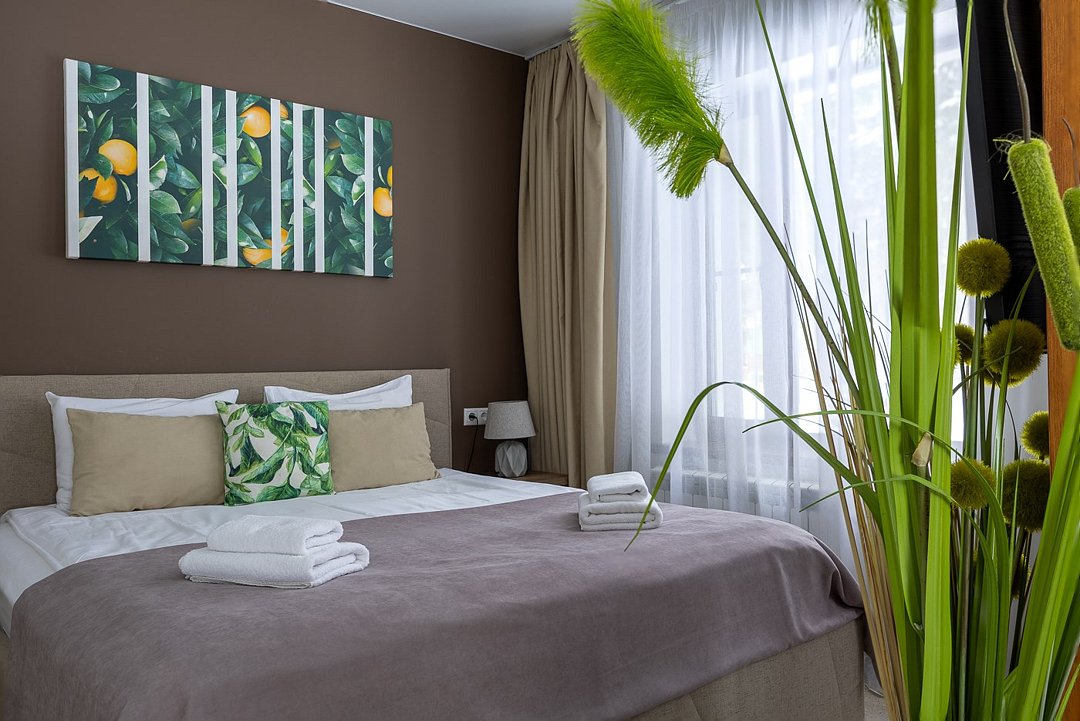 Apartaments 3 предназначены для совместного проживания с Apartments 1, между апартаментами предусмотрена межкомнатная дверь. В апартаментах имеется двуспальная кровать с матрасом премиум-качества, а также кресло и телевизор Smart TV - уютное место для вечернего отдыха, чтения или просмотра фильмов. Ванная комната оснащена белоснежной ванной и всеми необходимыми аксессуарами. Из окон апартаментов открывается живописный вид на лес, который позволяет полностью погрузиться в атмосферу гармонии с природой. Вместимость - до 2 человек Площадь 25 кв мУслуги и удобства