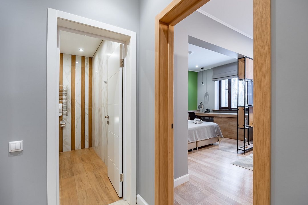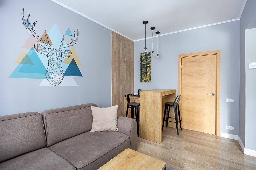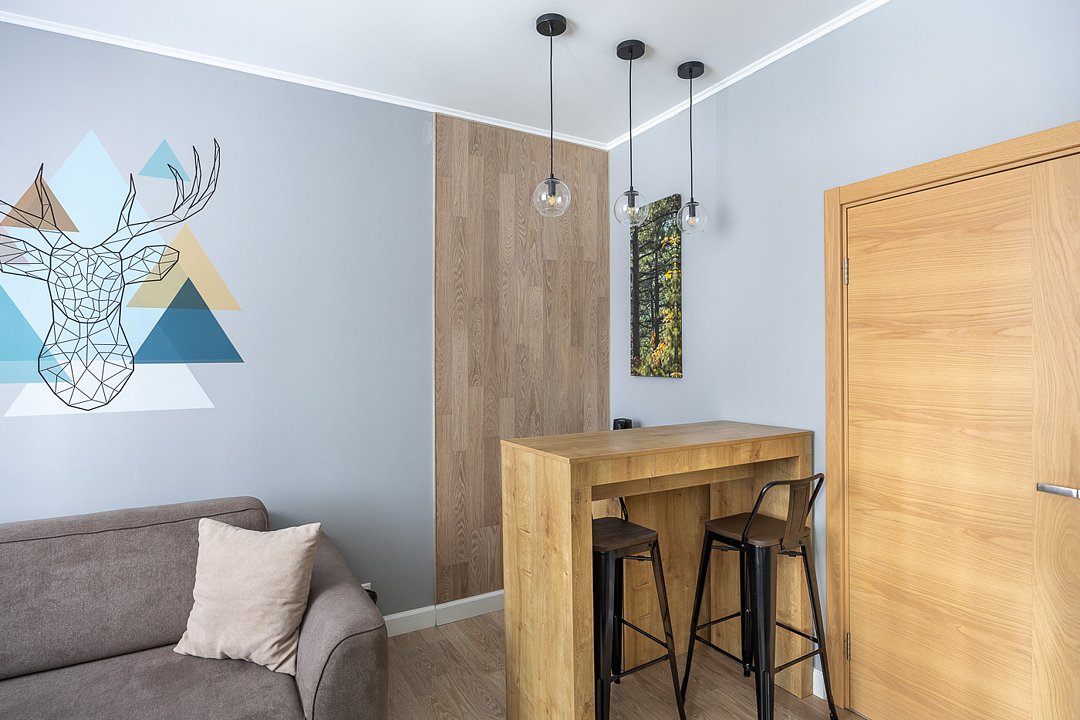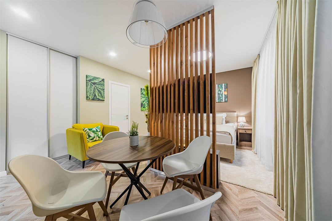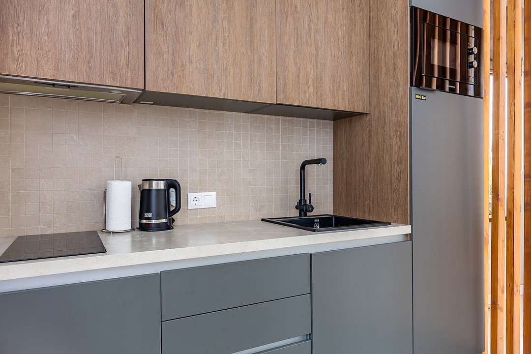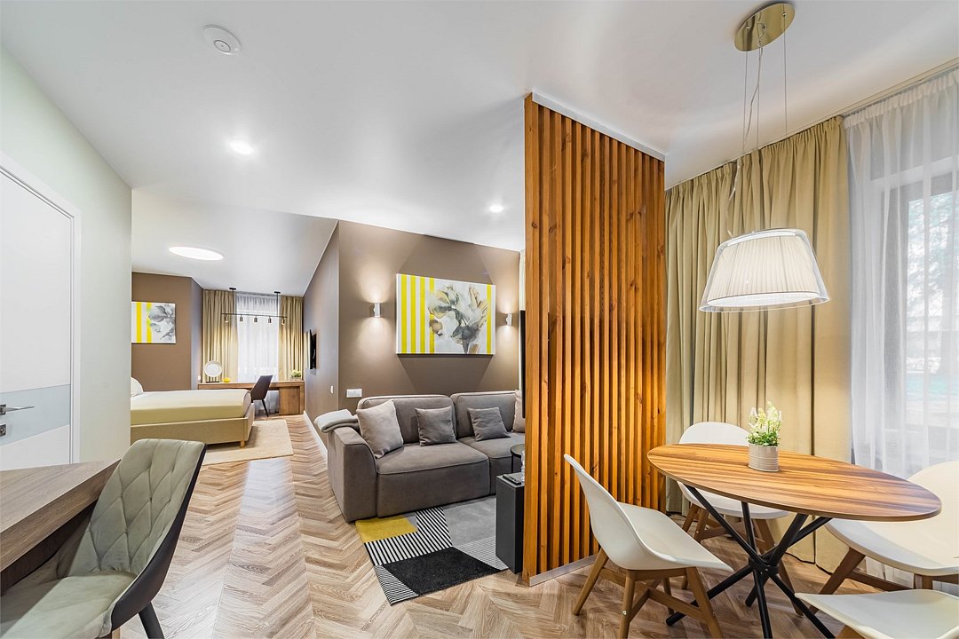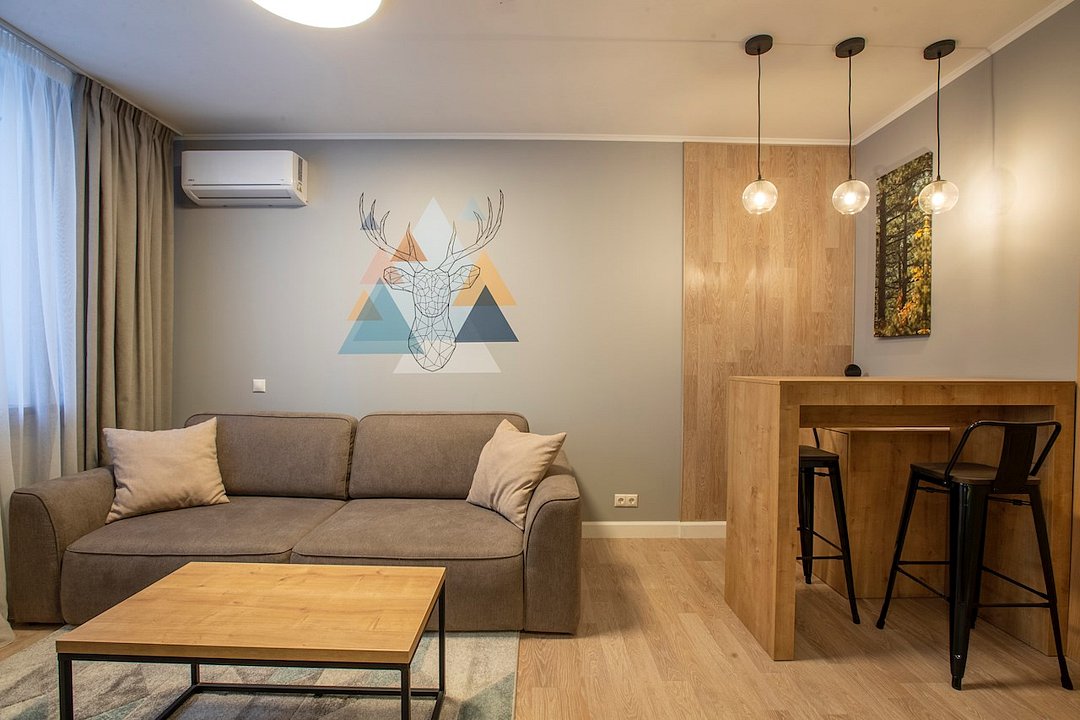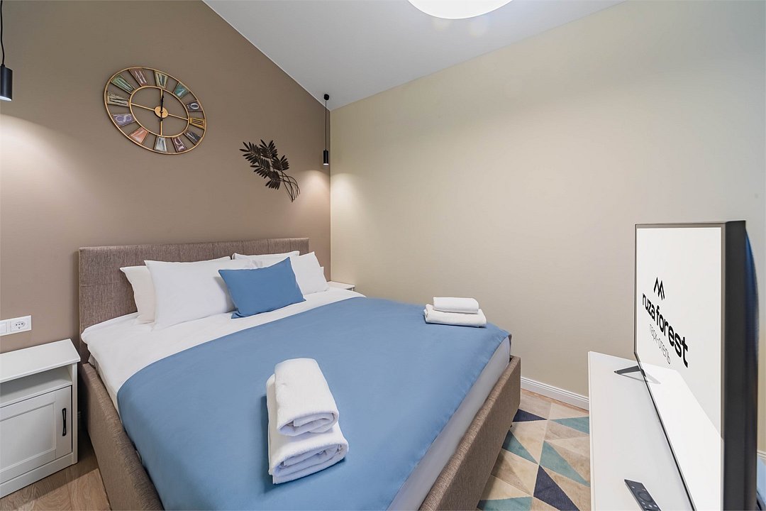 Apartments 1 расположены в окружении живописного Рузского леса и предлагают комфорт для полноценного отдыха вдали от городской суеты. Уникальный стильный дизайн интерьера создаёт уютную атмосферу и располагает к спокойствию и отдыху. В апартаментах предусмотрена спальная зона с двуспальной кроватью с матрасом премиум качества, обеспечивающим полноценный отдых, а также полностью оснащённая кухня для приготовления любимых блюд. Гостиная с мягким креслом, которая гармонично объединена с кухонной зоной. Для удобства гостей предусмотрен высокоскоростной интернет, телевизор Smart TV и ванная комната с душем, банными принадлежностями, халатами и тапочками. Из окон открывается завораживающий вид на лес - утром можно наслаждаться свежим воздухом и пением птиц, а вечером - умиротворением и тишиной. По желанию апартаменты можно объединить с соседним номером, создав единое пространство для комфортного отдыха большой компании или семьи. Площадь - 30 м². Вместимость - до 2 человек.Услуги и удобства