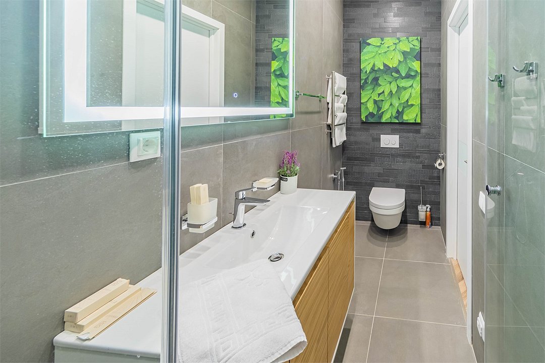Ванные комнаты оборудованы каррарской плиткой. Коллекция светильников сделает ваш вечер теплым. Исключительную заботу о вашем сне и отдыхе, вы сможете прочувствовать засыпая на ортопедических матрасах класса люкс. Каждая деталь в доме призвана сделать ваш отдых феноменальным.