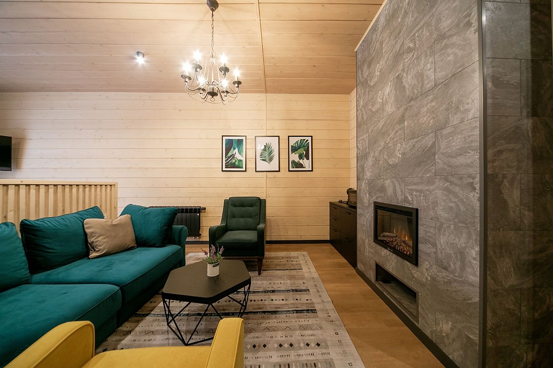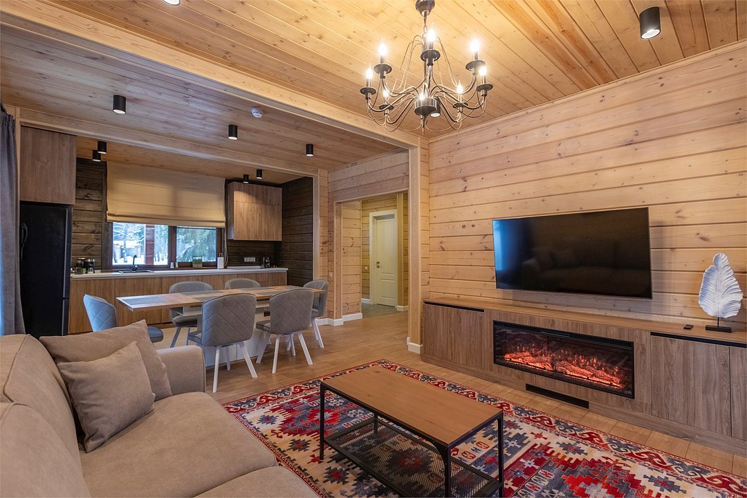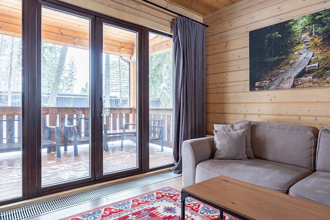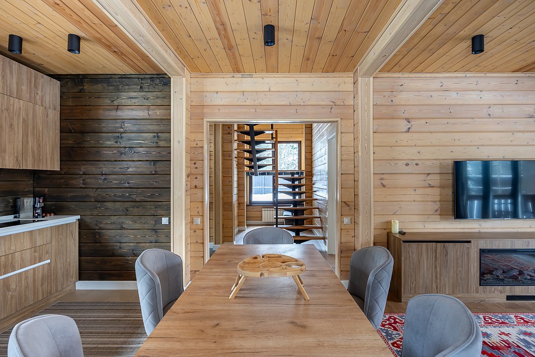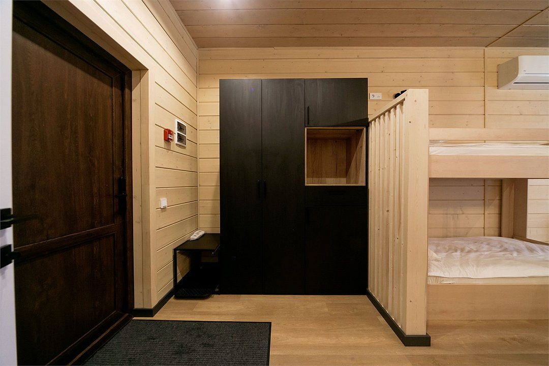 Barnhouse - это формат «ничего лишнего, только уют». Небольшой тёплый - номер, в который хочется возвращаться после долгих прогулок и активного дня. Пространство одноэтажное и очень гармоничное: спальная зона аккуратно отделена от гостиной, где расположен камин. Вечером здесь собираются все - кто-то устраивается с книгой, кто-то включает фильм, а кто-то просто наслаждается живым теплом и спокойной атмосферой. Размещение продумано для семьи или компании до шести человек: двуспальная кровать, двухъярусная кровать и раскладывающийся диван позволяют комфортно разместиться каждому. В доме есть компактная, но уютная кухонная зона. Утренний кофе, лёгкий завтрак или простой домашний ужин готовятся легко и без суеты. Именно тот формат кухни, который дополняет отдых, а не отвлекает от него. Санузел с душевой кабиной и тёплым полом добавляет приятного комфорта в любое время года. Терраса и лоджия открывают вид на природу и реку. Площадь Barnhouse - 50 м². Вместимость - до 6 человекУслуги и удобства