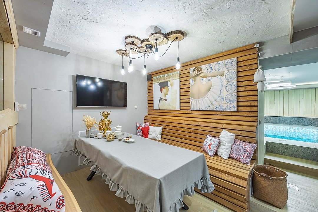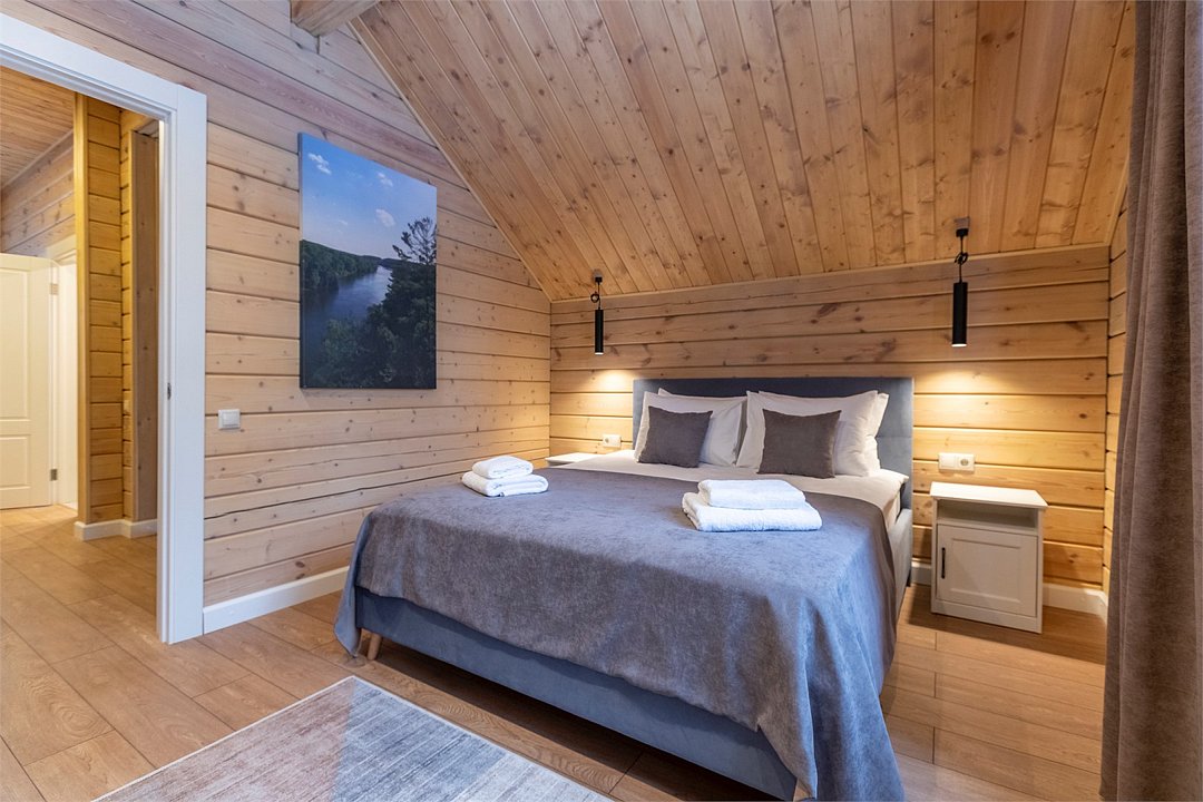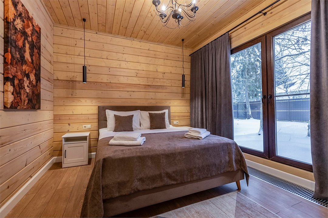 Апартаменты 2 расположены в самом сердце Рузского леса и создают атмосферу спокойного загородного отдыха. Достойный уровень комфорта обеспечивают эксклюзивный дизайн и элегантная мебель, каждая деталь интерьера продумана для вашего удобства. В апартаментах предусмотрена двуспальная кровать с матрасом премиум-качества, гарантирующем полноценный сон, а также мягкий диван - идеальное место для вечернего чтения или просмотра фильмов, где можно расслабиться после активного дня и насладиться уютом собственного уголка среди природы. Для удобства гостей оборудована кухня со всем необходимым для приготовления любимых блюд. Ванная комната выполнена по европейским стандартам, оснащена всеми необходимыми банными принадлежностями. Из окон апартаментов открывается живописный вид на лес, который позволяет полностью погрузиться в атмосферу умиротворения и гармонии с природой. Вместимость - до 4 мест. Площадь 50 кв мУслуги и удобства