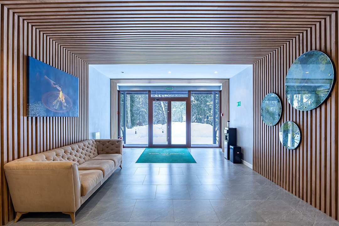 Семейный отдыхДостоинстваМы всем довольны) Нам достался прекрасный номер: современный, уютный, с красивым интерьером. Удобная кровать с качественным постельным бельем, несколько столешниц для работы или перекуса, шторы блэкаут для крепкого сна, удобный диван, мягкие халаты, теплый пол в ванной, а за окном -красивейший лес. Завтраки, хотя и без изысков, были разнообразными и вкусными. Дети были в восторге от новой детской площадки на улице. Территория, вся в высоких деревьях и соснах, вокруг спокойно и комфортно. Парковка у корпуса была удобной, возможность спуститься к реке - огромный плюс.