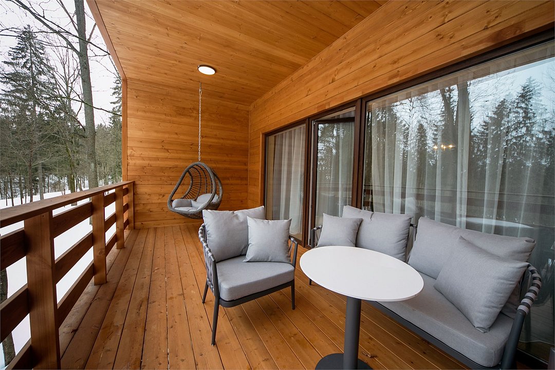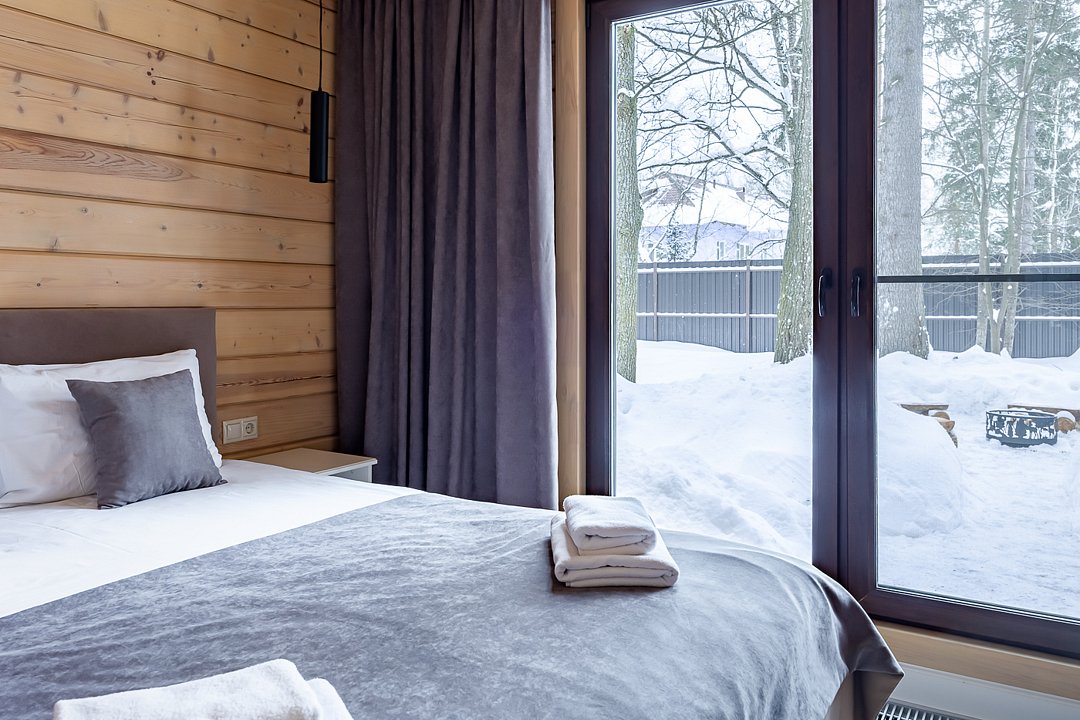 Семейный отдыхДостоинстваВ первую очередь, стоит отметить доброжелательный персонал, который оперативно реагирует на все запросы и своевременно устраняет возникающие проблемы. Кроме того, нас приятно удивило вкусное и разнообразное меню завтраков в формате шведского стола. Мы останавливались в просторном и комфортном домике. Дополнительным плюсом стало наличие электрического камина и теплого пола в ванной комнате. Но, пожалуй, самым впечатляющим был вид из окна на лес, вставать с таким видом каждое утро было очень приятно.