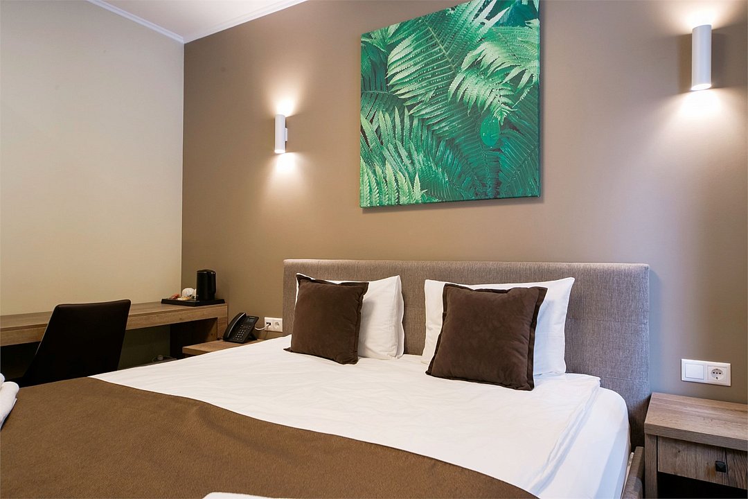 Тот самый номер, где всё просто и правильно. Ничего лишнего - только комфорт, тишина и лёгкость. Интерьер выполнен в спокойных естественных оттенках. Пространство светлое, аккуратное и очень уютное. Здесь удобно остановиться вдвоём или одному - для короткого отдыха или неспешных выходных. Формат размещения можно выбрать: одна двуспальная кровать или две отдельные. Санузел с душевой кабиной. Всё необходимое уже предусмотрено - можно приезжать налегке. Из окон открывается вид на лес. Утром в номер мягко проникает естественный свет, а за стеклом - естественное спокойствие и ощущение уединения. Даже находясь внутри, чувствуешь близость природы. Площадь - 30 м². Вместимость - до 2 человек.Услуги и удобства