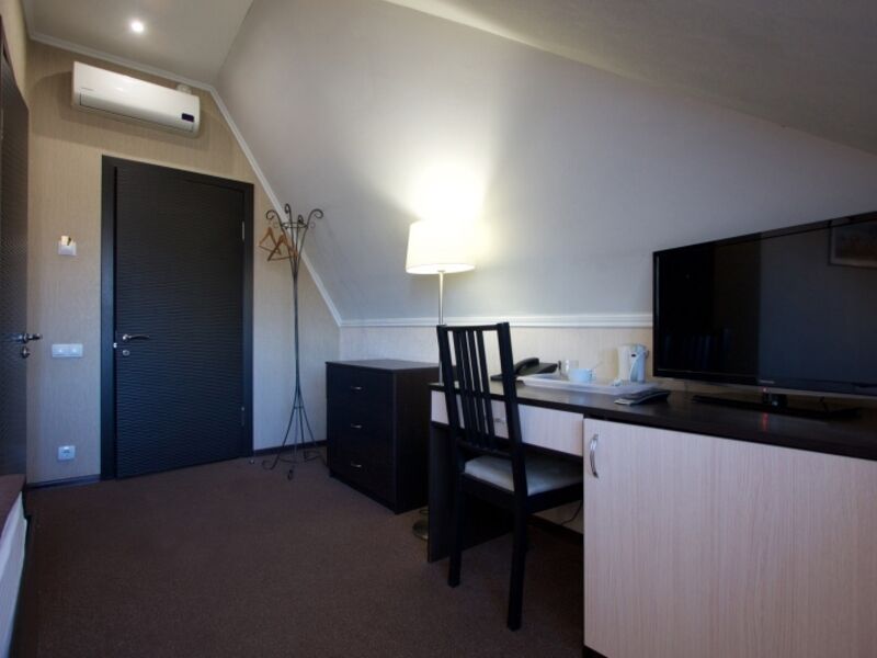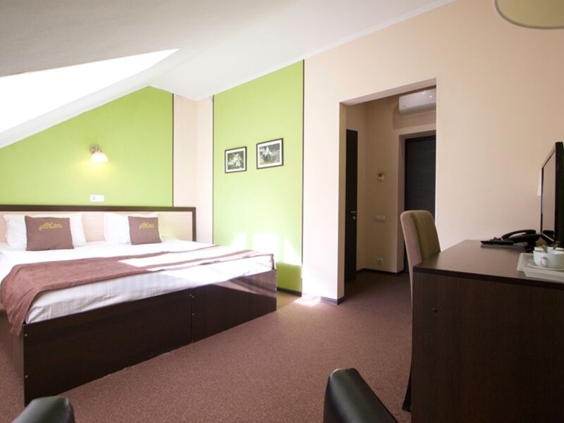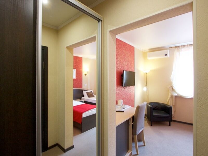 4-х этажное здание отеля, расположенное в тихом спокойном районе города, состоит из 22 комфортабельных номеров, в которых единовременно может разместиться до 50 человек. Номера категории Стандарт, Комфорт, Бизнес, оформленные в лаконичном современном стиле, оснащены необходимой техникой, мебелью и ванной комнатой с душем.