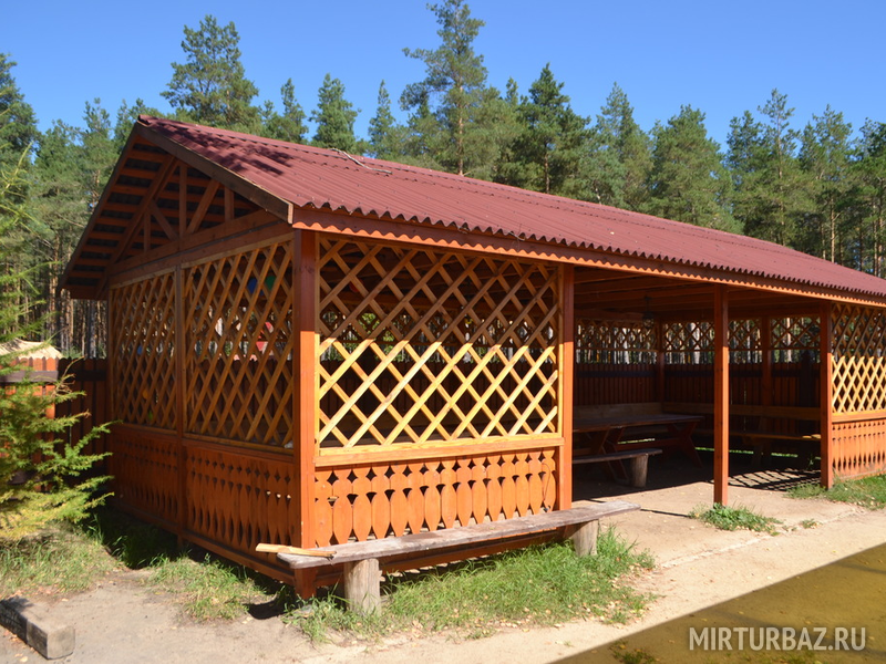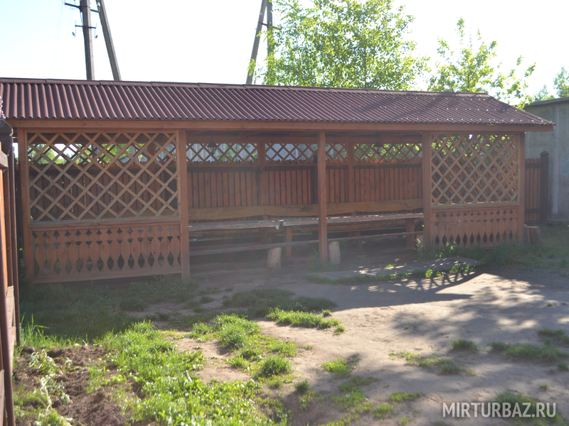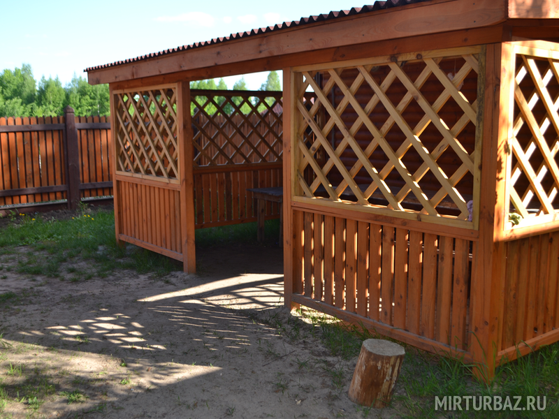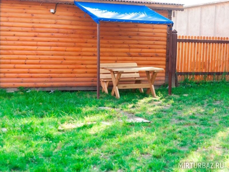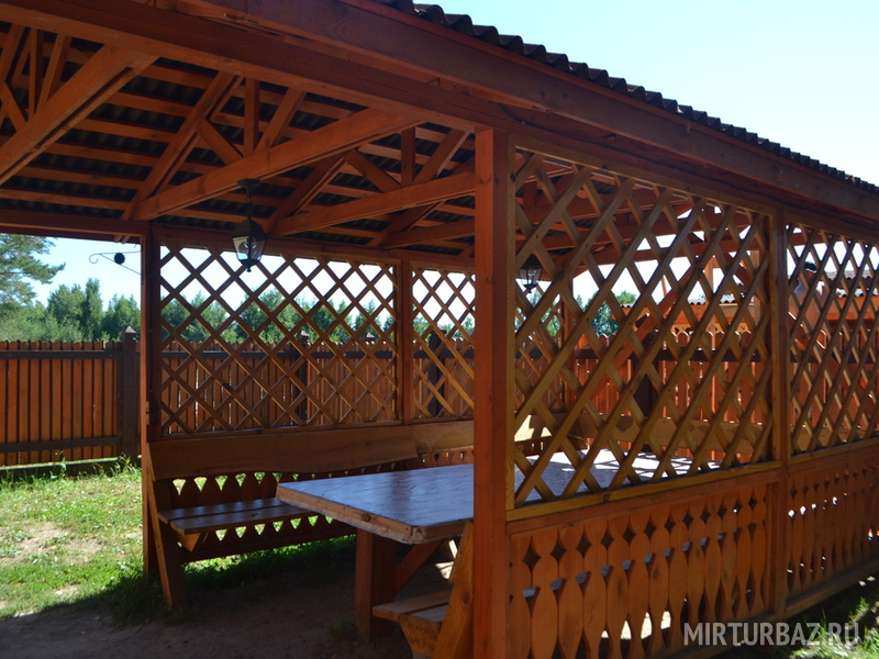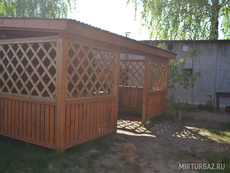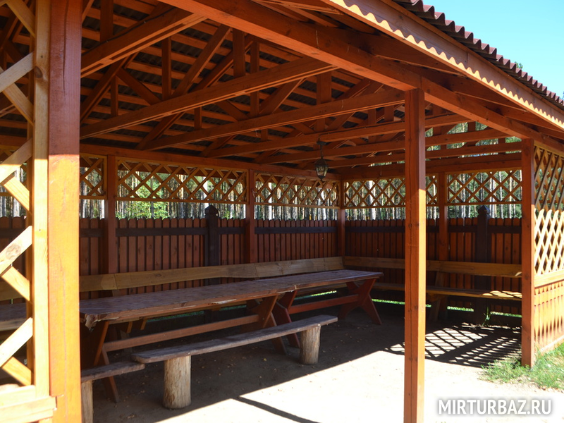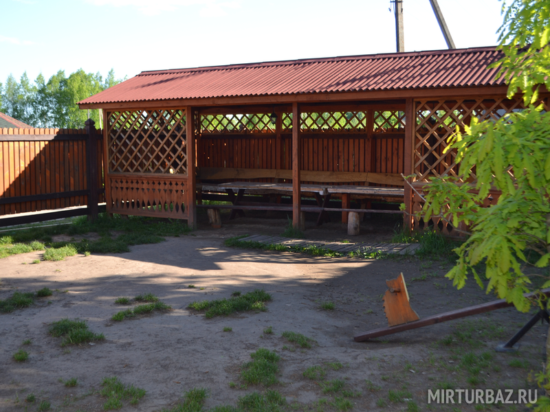 Вмещает до 15 человек. К территории подведены вода, электричество, имеется мангал, крытая площадка с навесом для пикника: столы и лавки время аренды 12 часов.